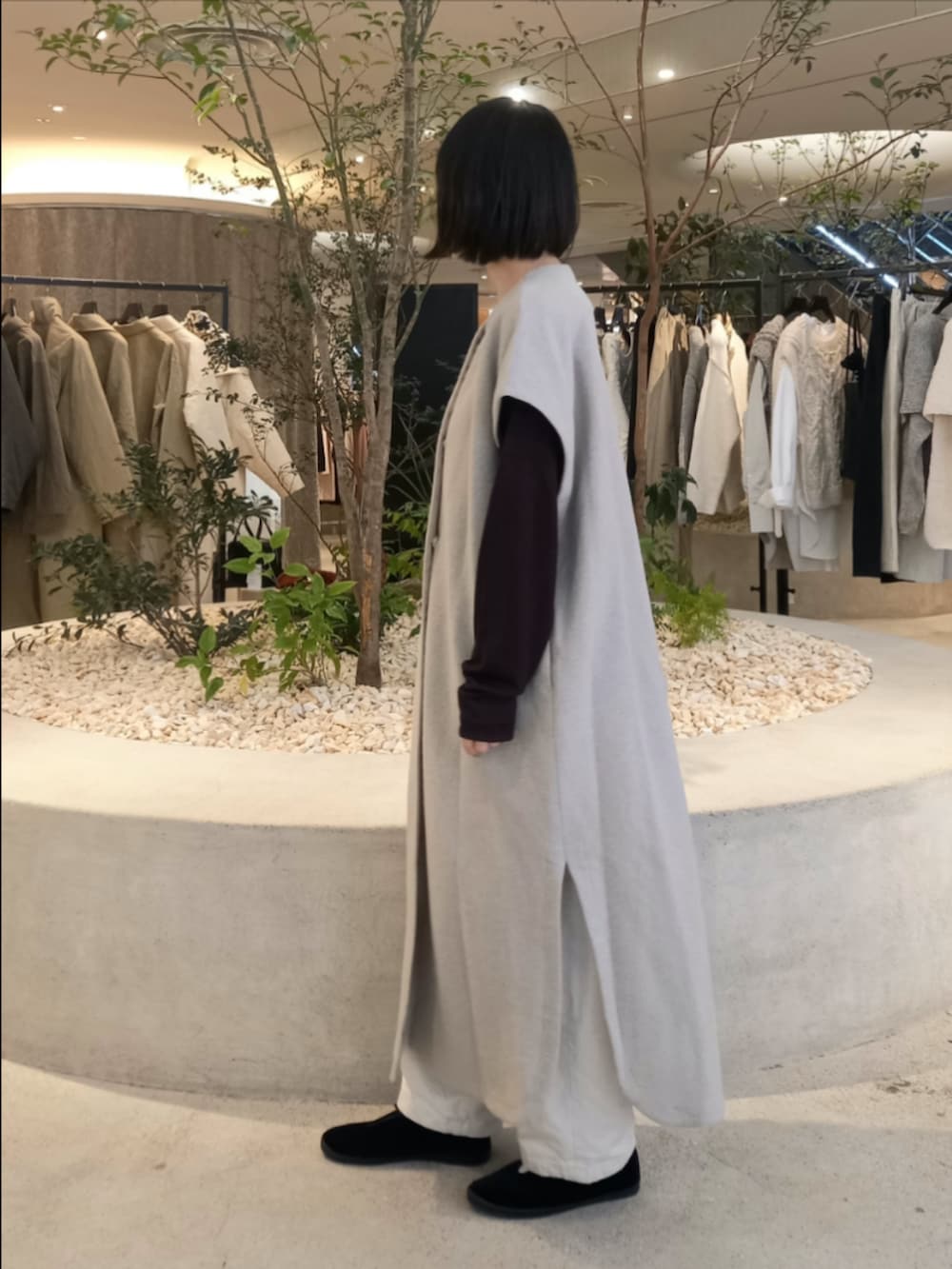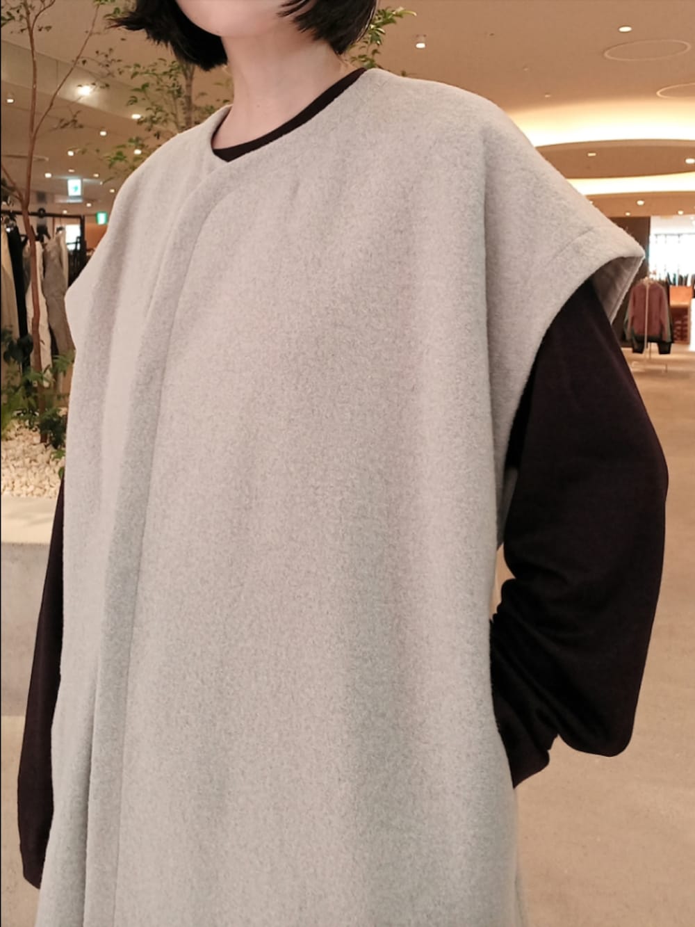 カットソーやブラウス、薄手のニットなどにベスト感覚で重ねたり