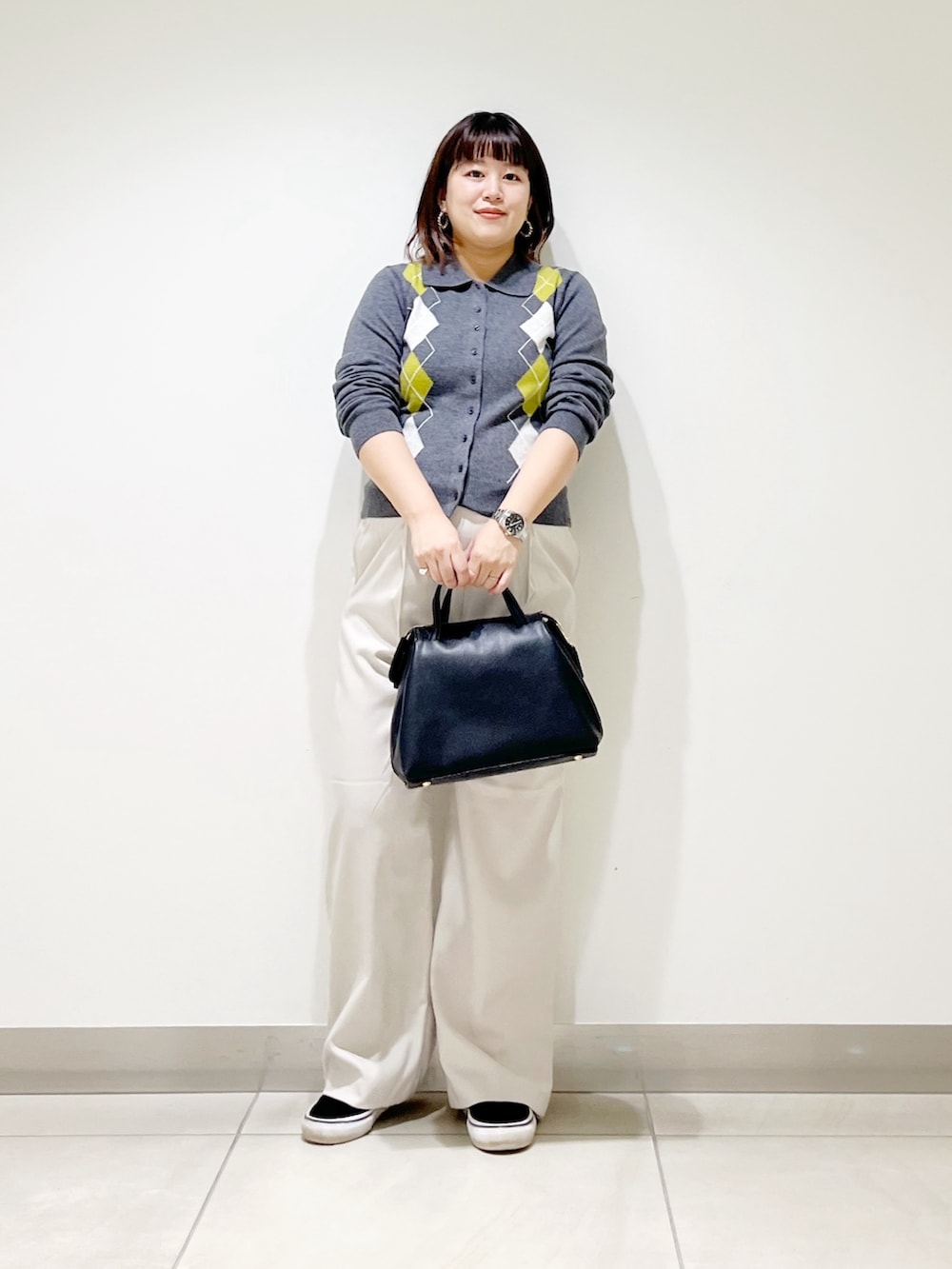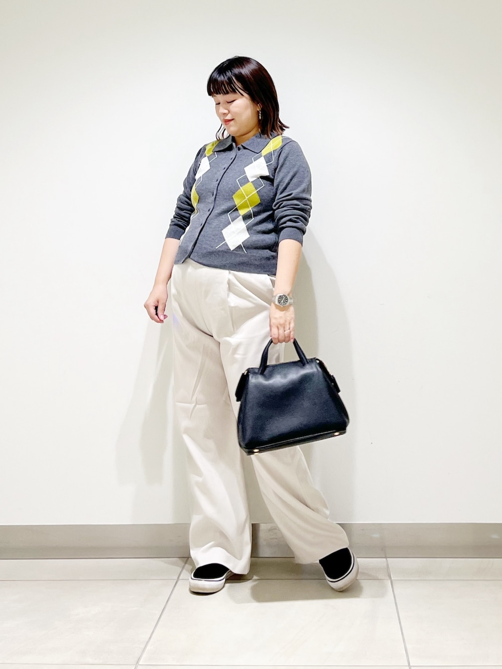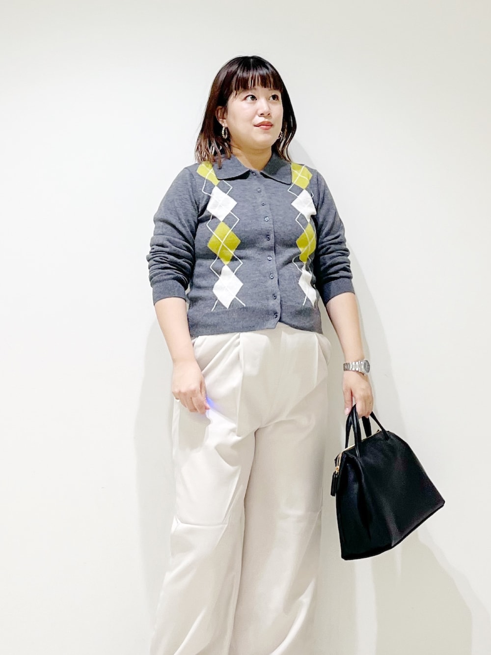 本日は今年トレンドのアーガイル柄ニットを着てみました。