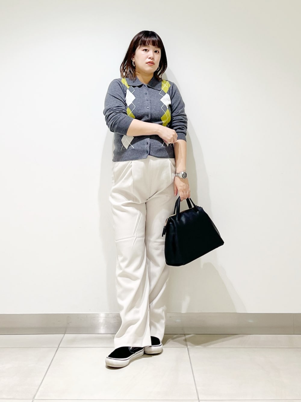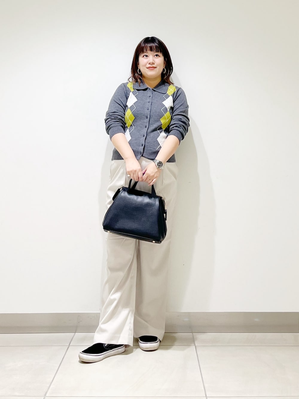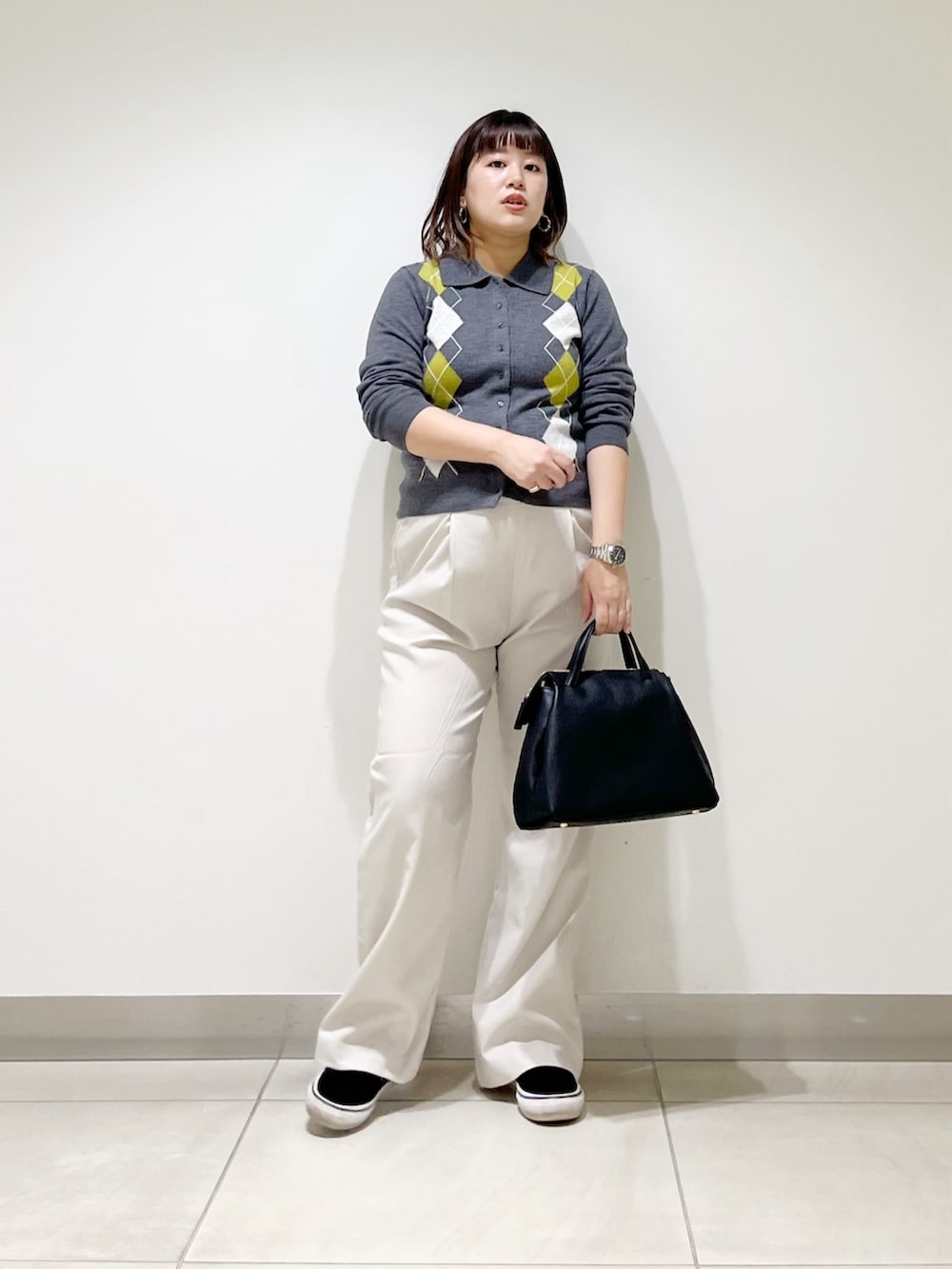 本日は今年トレンドのアーガイル柄ニットを着てみました。