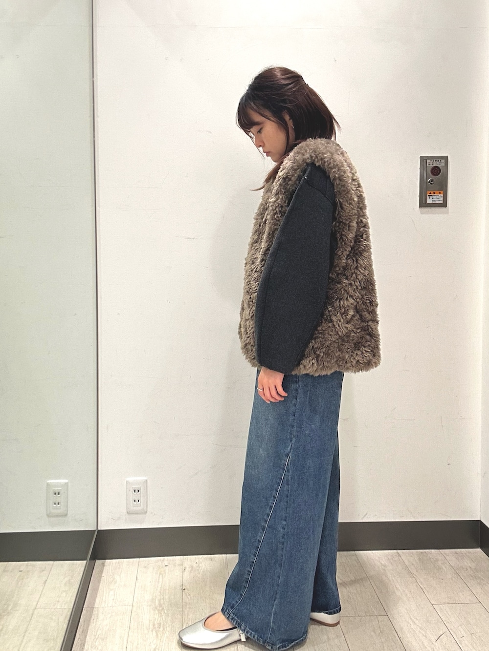 フェイクファーとデニムのコーディネートは秋の定番になりそうです!