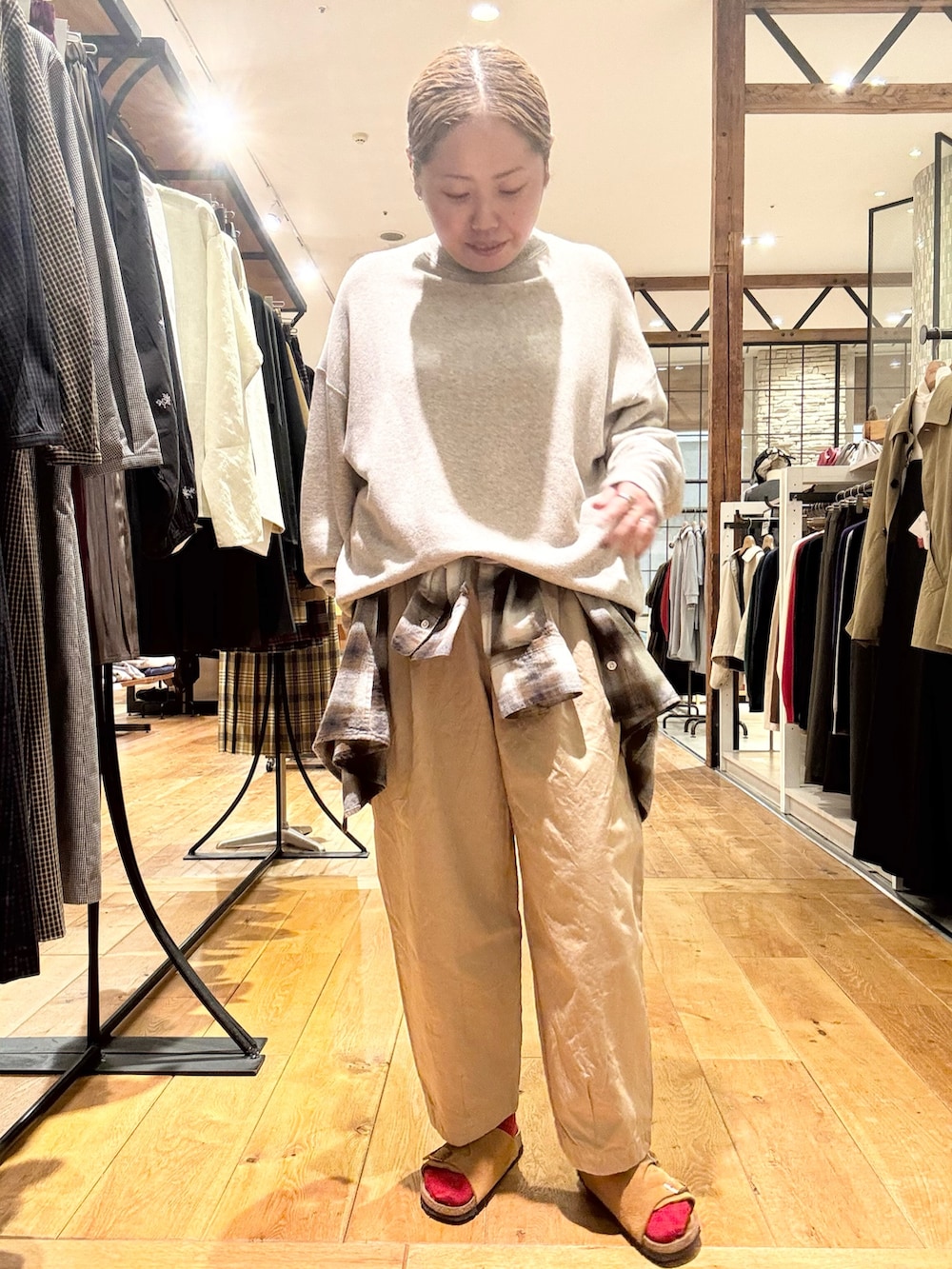パンツがクロップド丈で短めなので