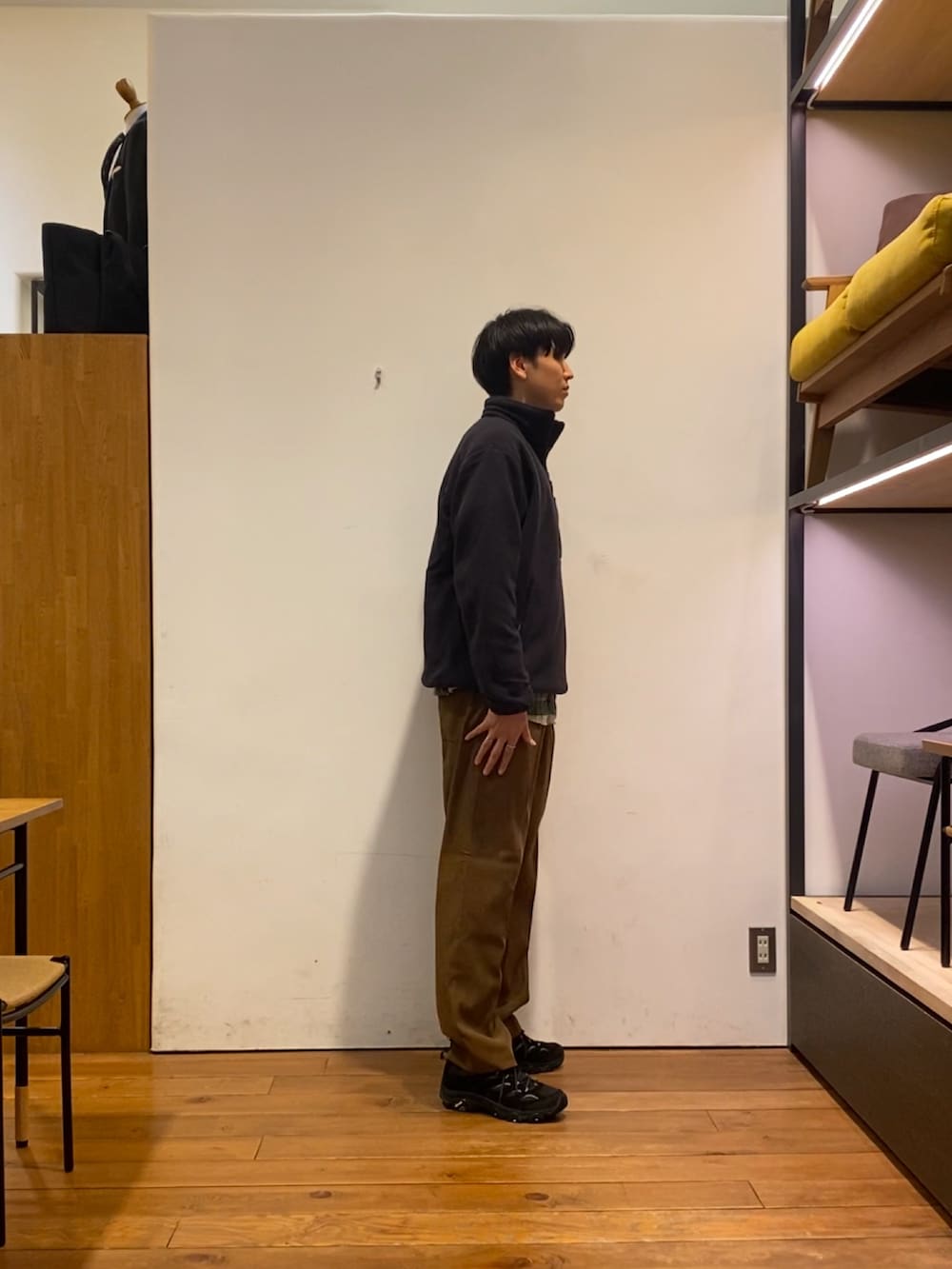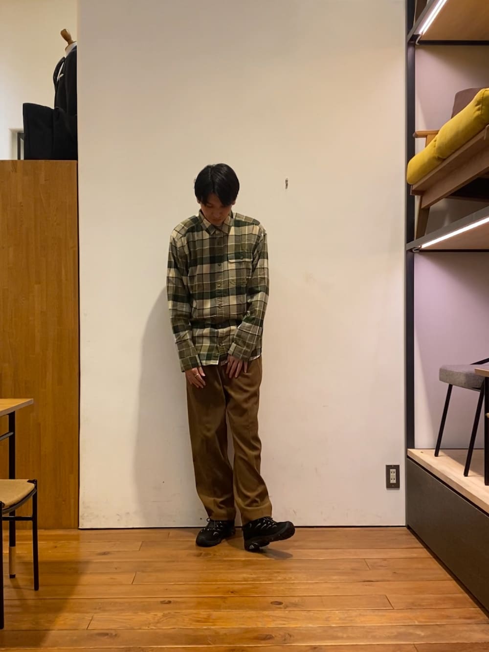 パタゴニアのチェックシャツとスエードライクのパンツを合わせてトレンドカラーを入れてみました!