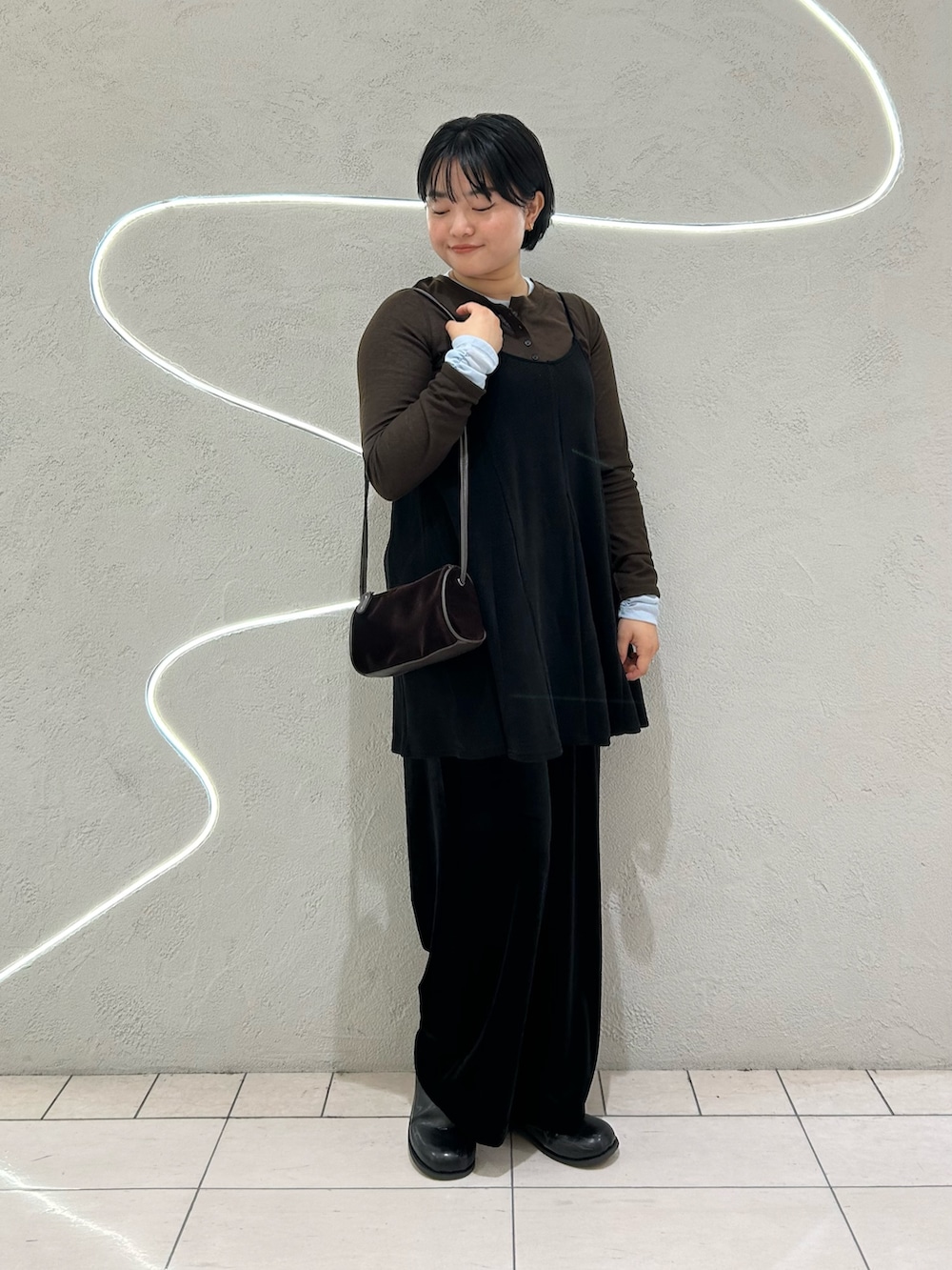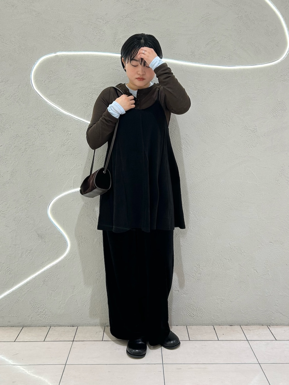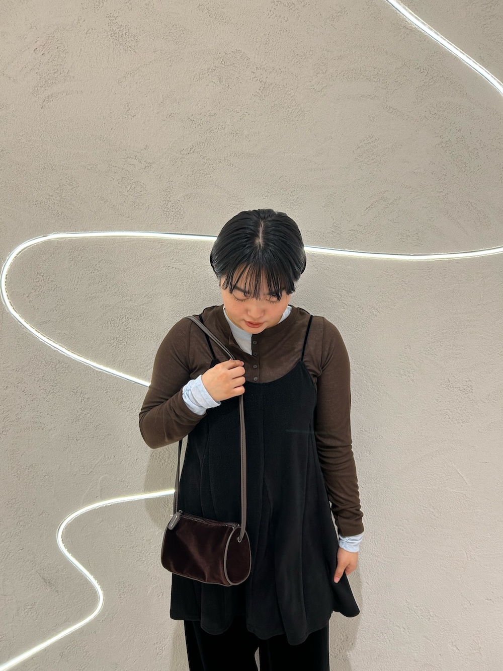 レイヤードがすぐに決まっちゃう最強アイテム!配色も可愛くて濃いめのブラウンに水色って組み合わせ抜群!