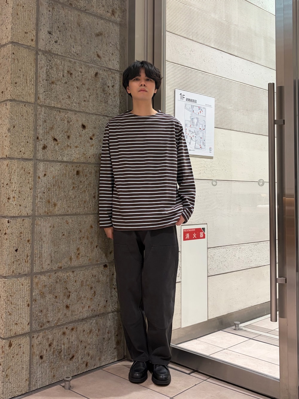 ロンTの柄チラ見せでいい感じです👍