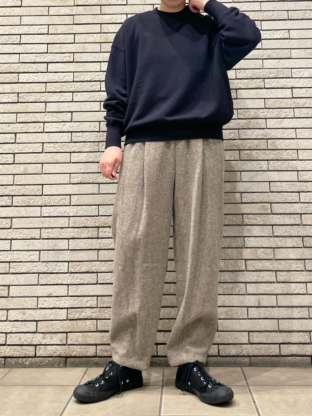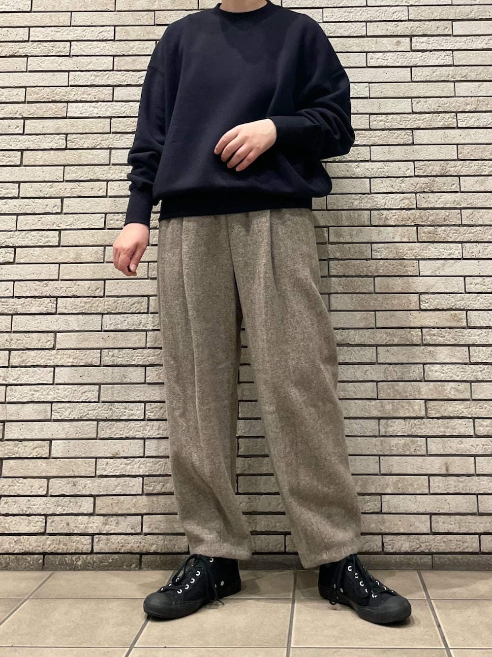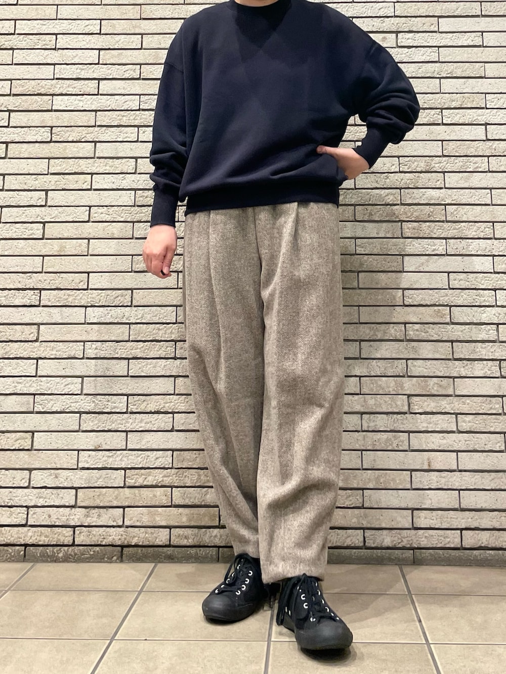今回はスウェットと合わせて、上品なカジュアルスタイルです。スウェットは柔らかい着心地で、これからの季節に活躍します!