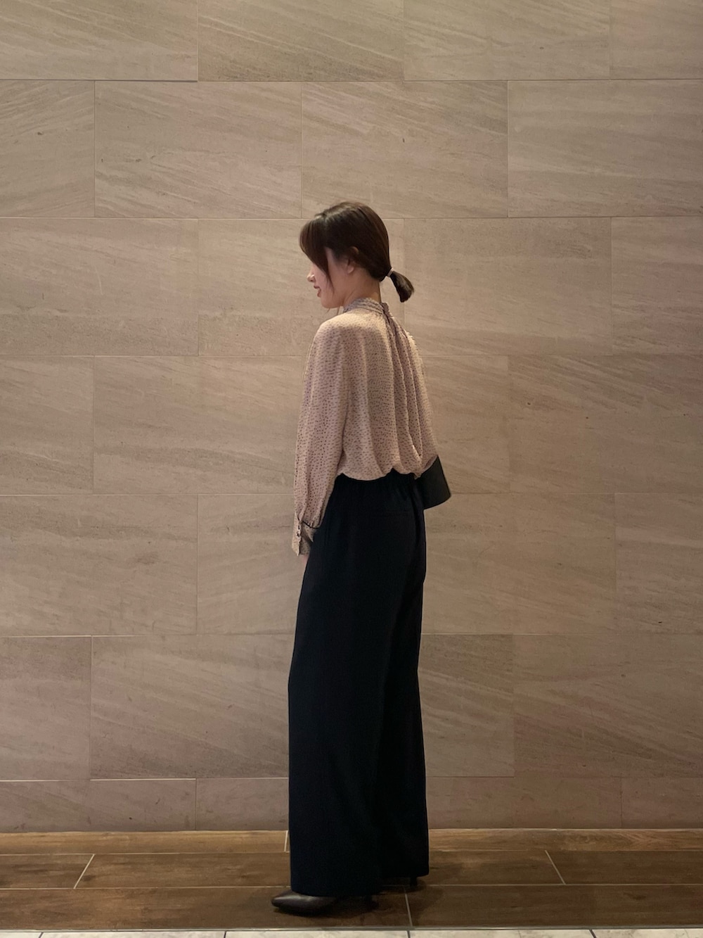 毛羽立ちが少なく、ご自宅でのお手入れが可能です。ウエストはバックゴム仕様で履き心地が良いのがポイントです。すっきりとしたストレートシルエットでデイリーはもちろん、オフィスでも活躍するパンツになります。
