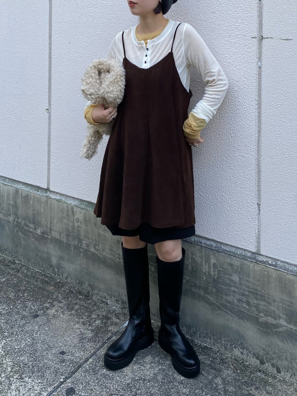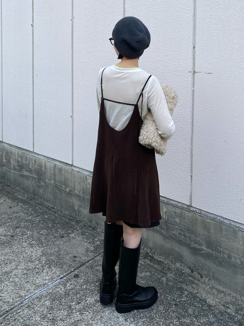足出しが苦手な方でも、ロングブーツを履いていただくことで、挑戦していただけるコーデです!