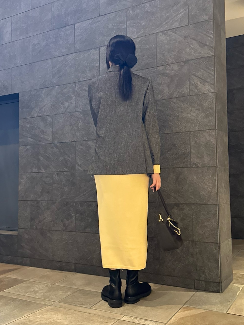 下のボタンを開けるとスリットを作れるのでパンツをレイヤードしても◎