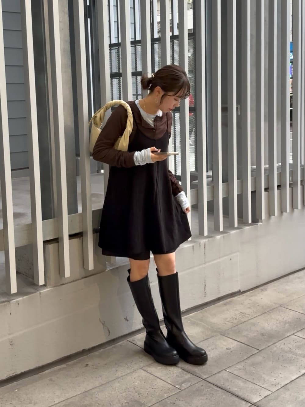 単品使いも可能なレイヤードトップスをミニワンピースのインナーとして使いました✨