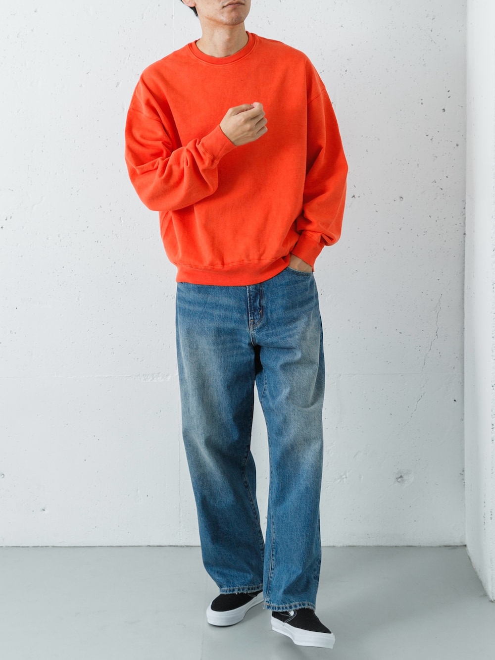 アーティストたちが好んで愛用したアメリカ90’sのスウェットのディテールや雰囲気にインスピレーションを得ながら、国内工場で編んだタフな裏毛生地を用いて丁寧に現代のシルエットに落とし込みました。