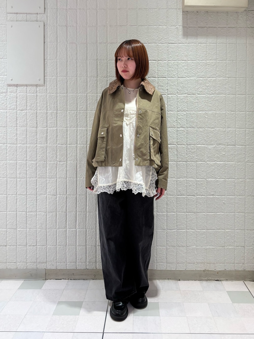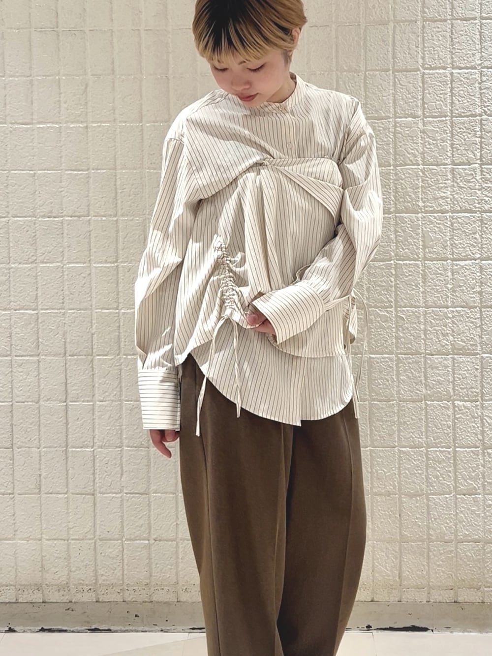 紐を自由に結べるトップスにコーデュロイのパンツを合わせました!
