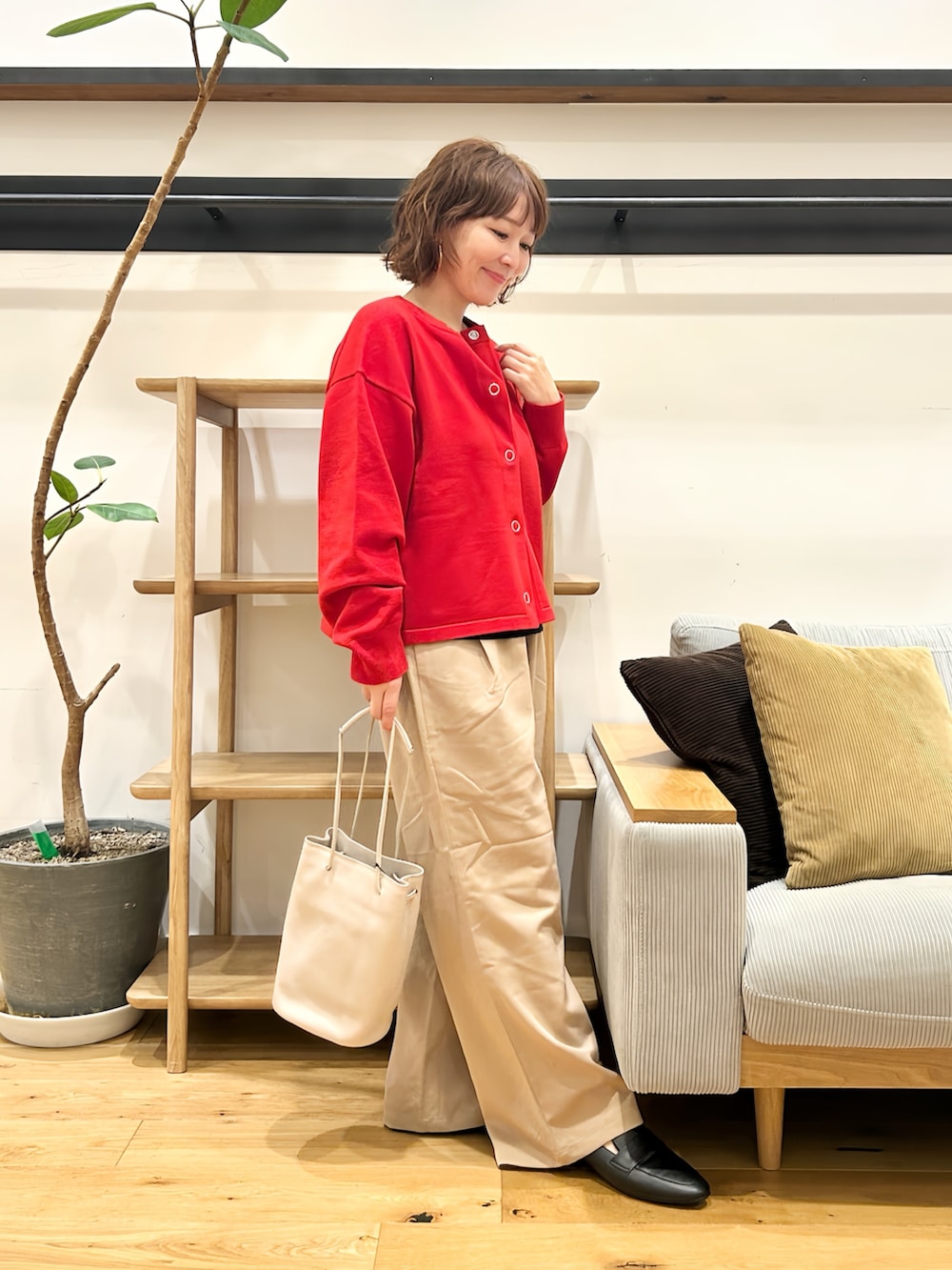 綺麗な鮮やかな赤のアイテム、秋冬にひとつは欲しくなりますね。