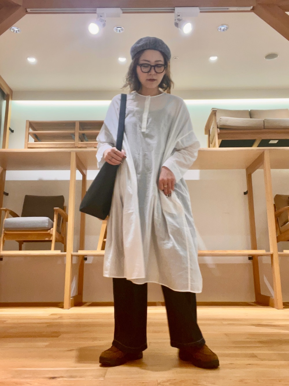 大きめショルダーバッグを合わせてこなれ感をプラスしました‼︎