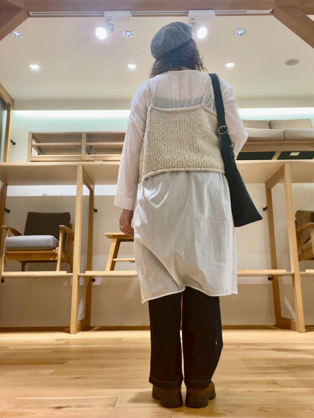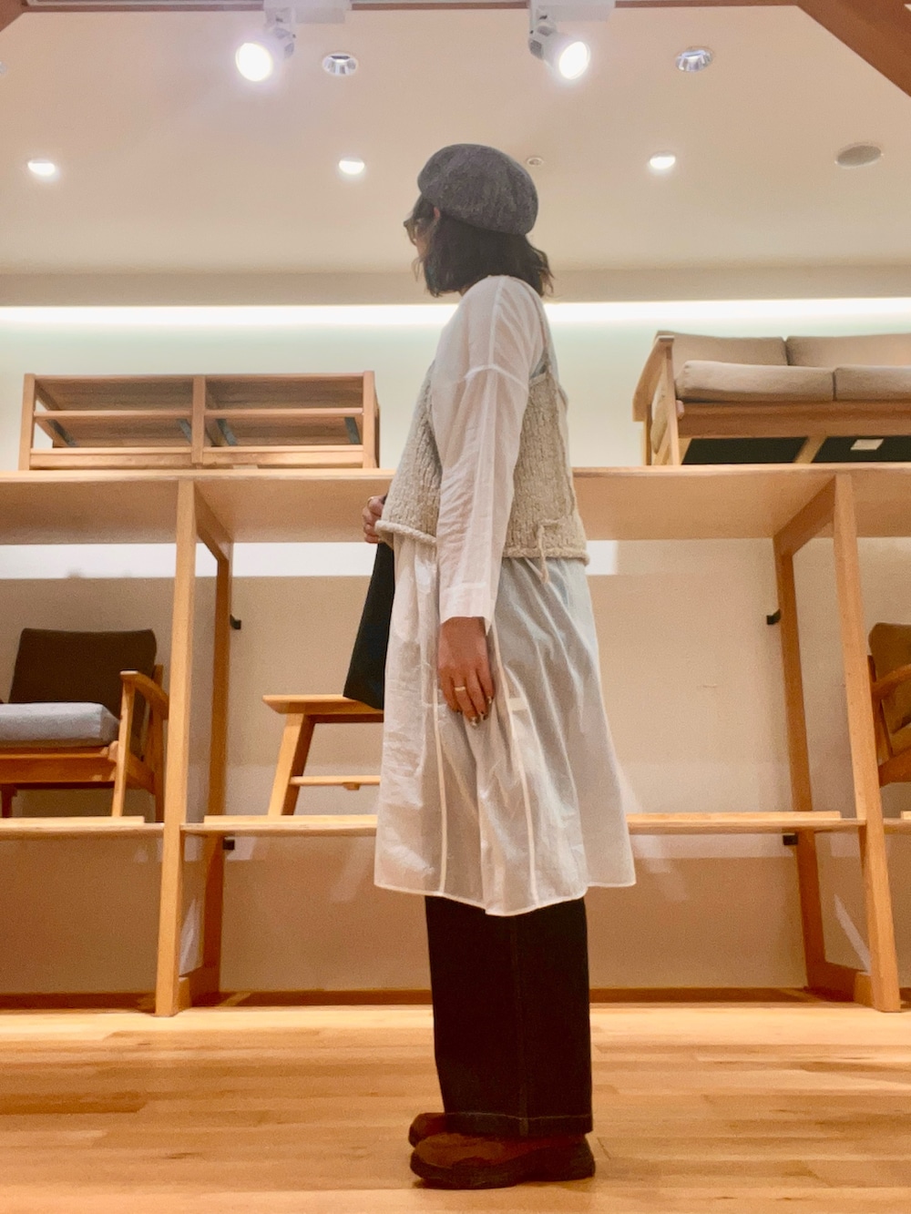 シアーチュニックには、ニットビスチェを合わせて秋らしい装いに‼︎