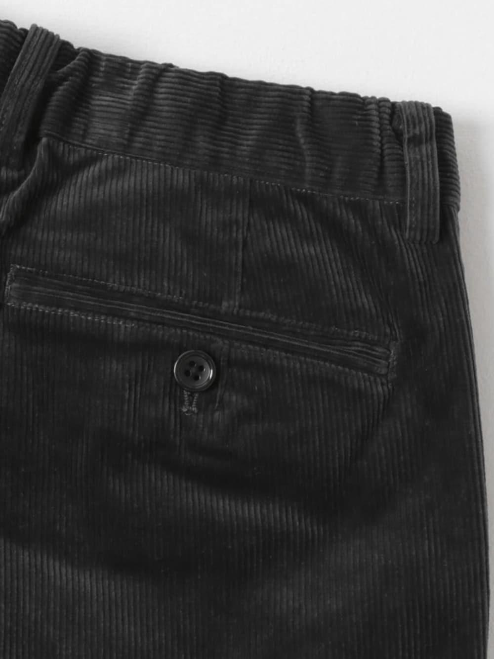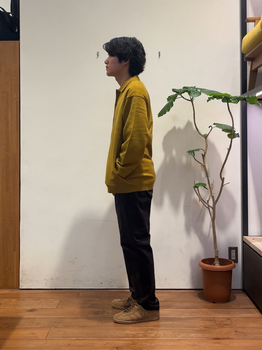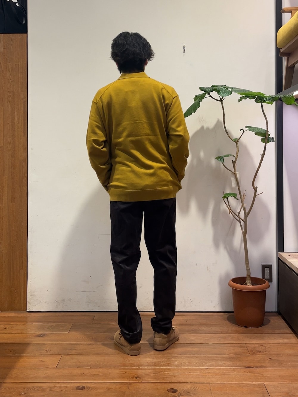 コーデュロイパンツを使ったコーデです。色味チャコールですごくわかりづらいですがほぼ黒です。4枚目の写真の色味です。200日ニットのカーディガンで合わせてキレイめで上品な感じで組みました。イェローカーキでかなり秋です👍インナーは無地、ボーダー、チェック、気分で変えてください。そんな遊びができるシンプルなアイテムです。パンツは細身で光沢感もあるので基本キレイめで合わせていただくのがおすすめです。