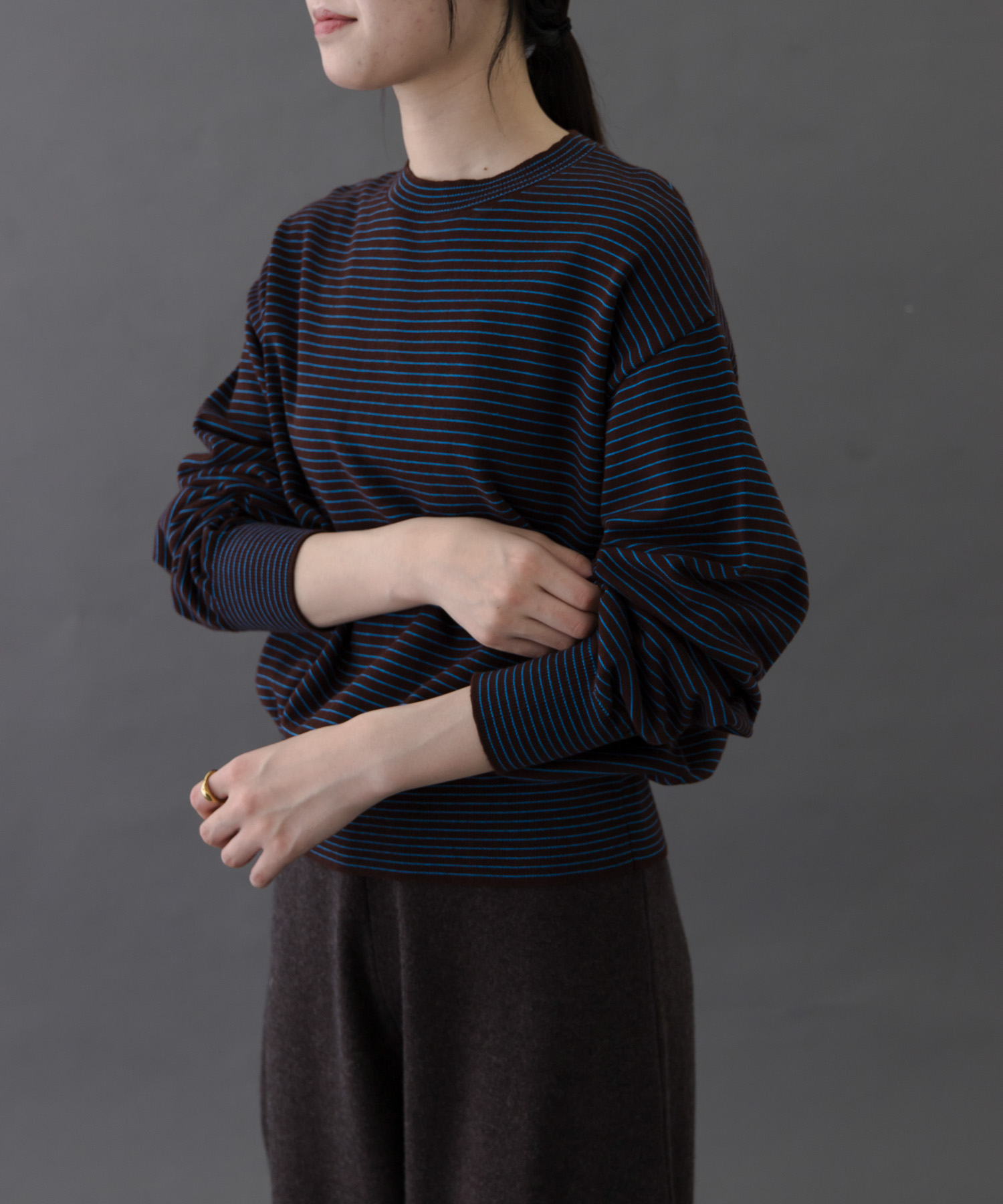 合わせたボーダーニットも腰でしっかり止まる着丈と配色がかわいい!