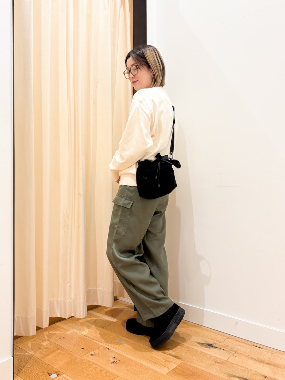 ボアのショルダーバッグは昨年私もリアルバイした商品で、見た目よりもたくさんものが入りとても使い勝手が良いです◎