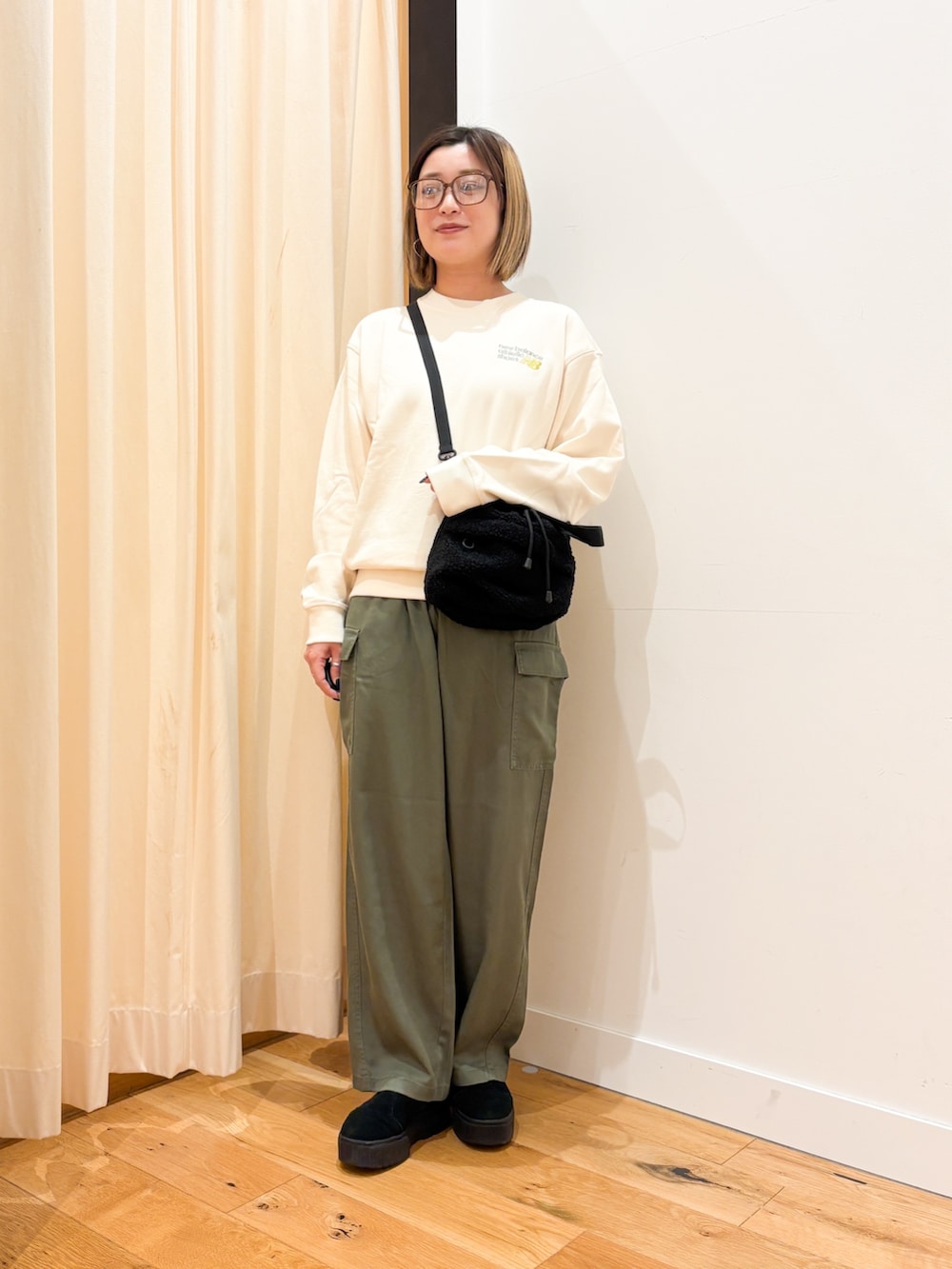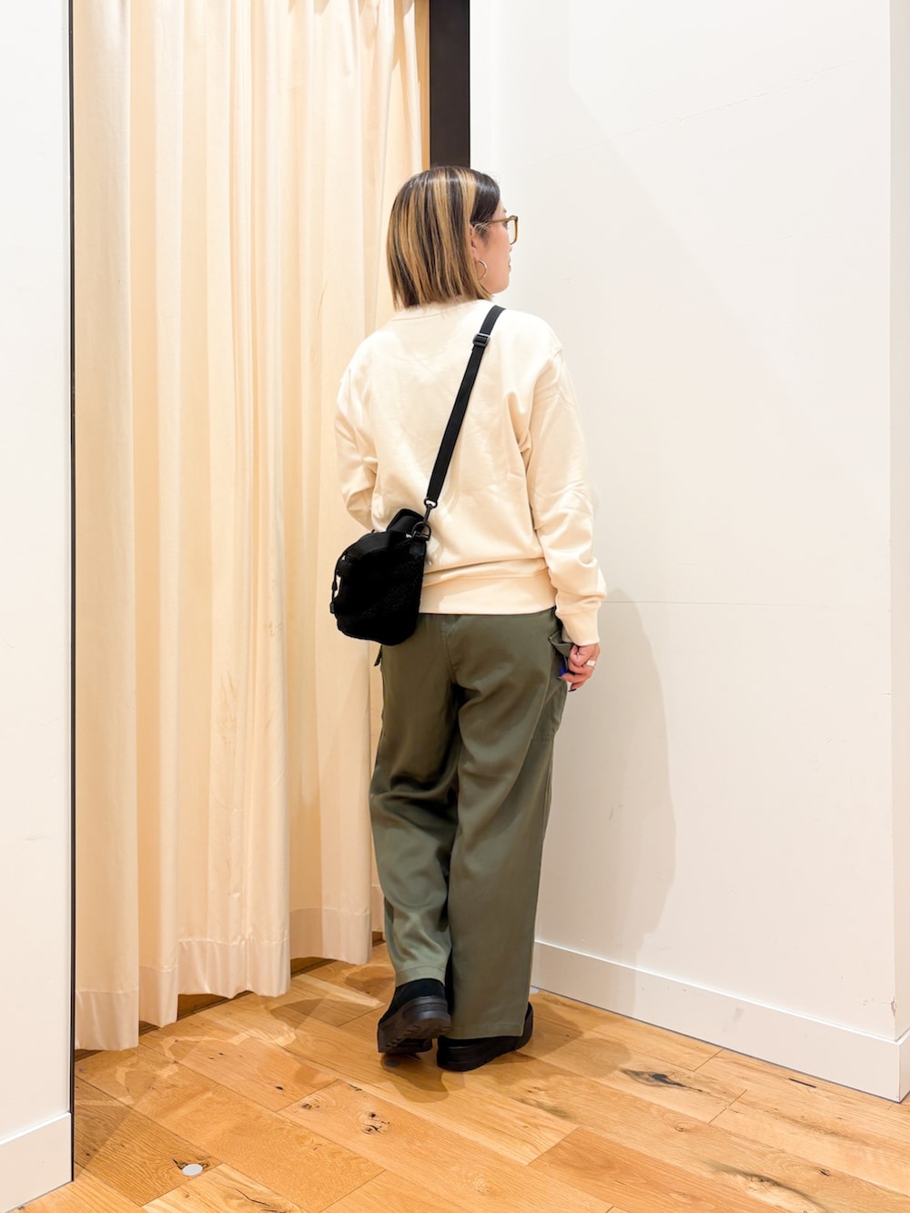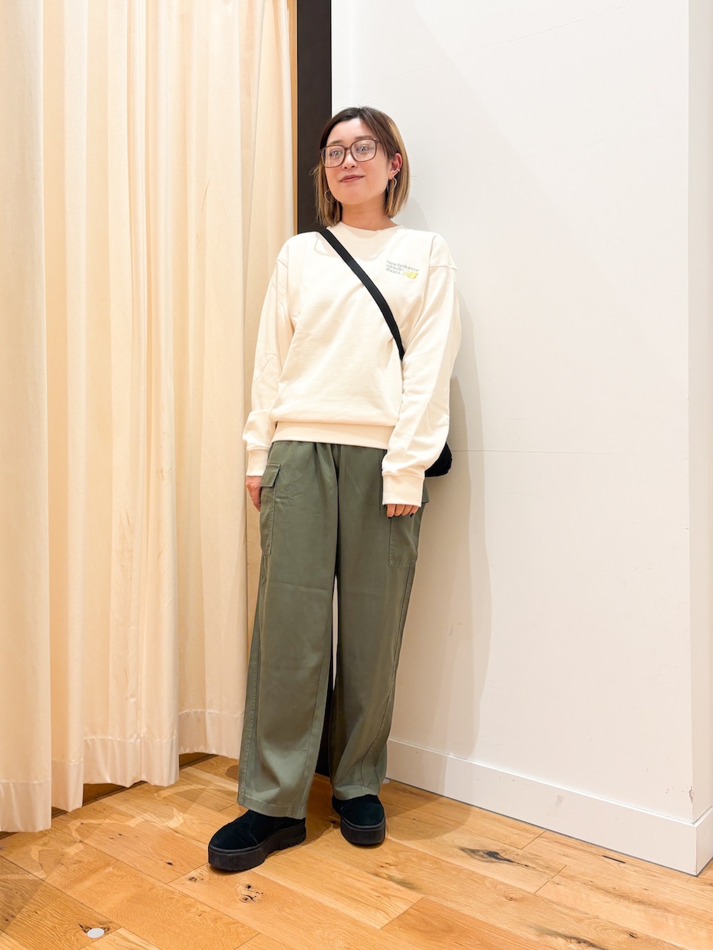 new balanceのスウェットは程よくゆったり感があり、裾がリブになっているので腰で長さ調節をすると綺麗なシルエットで着用できます。
