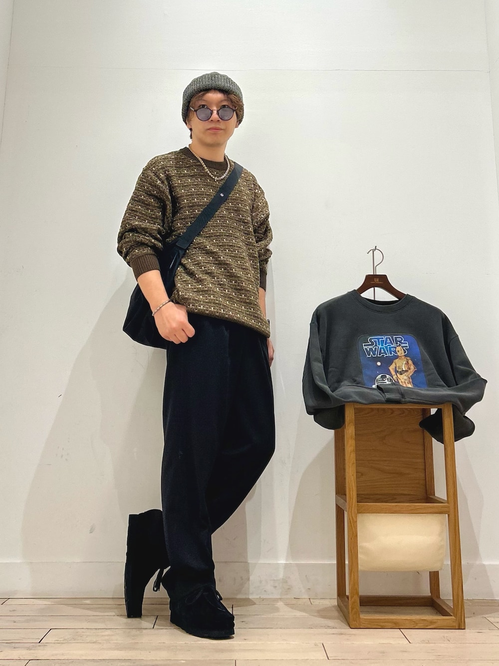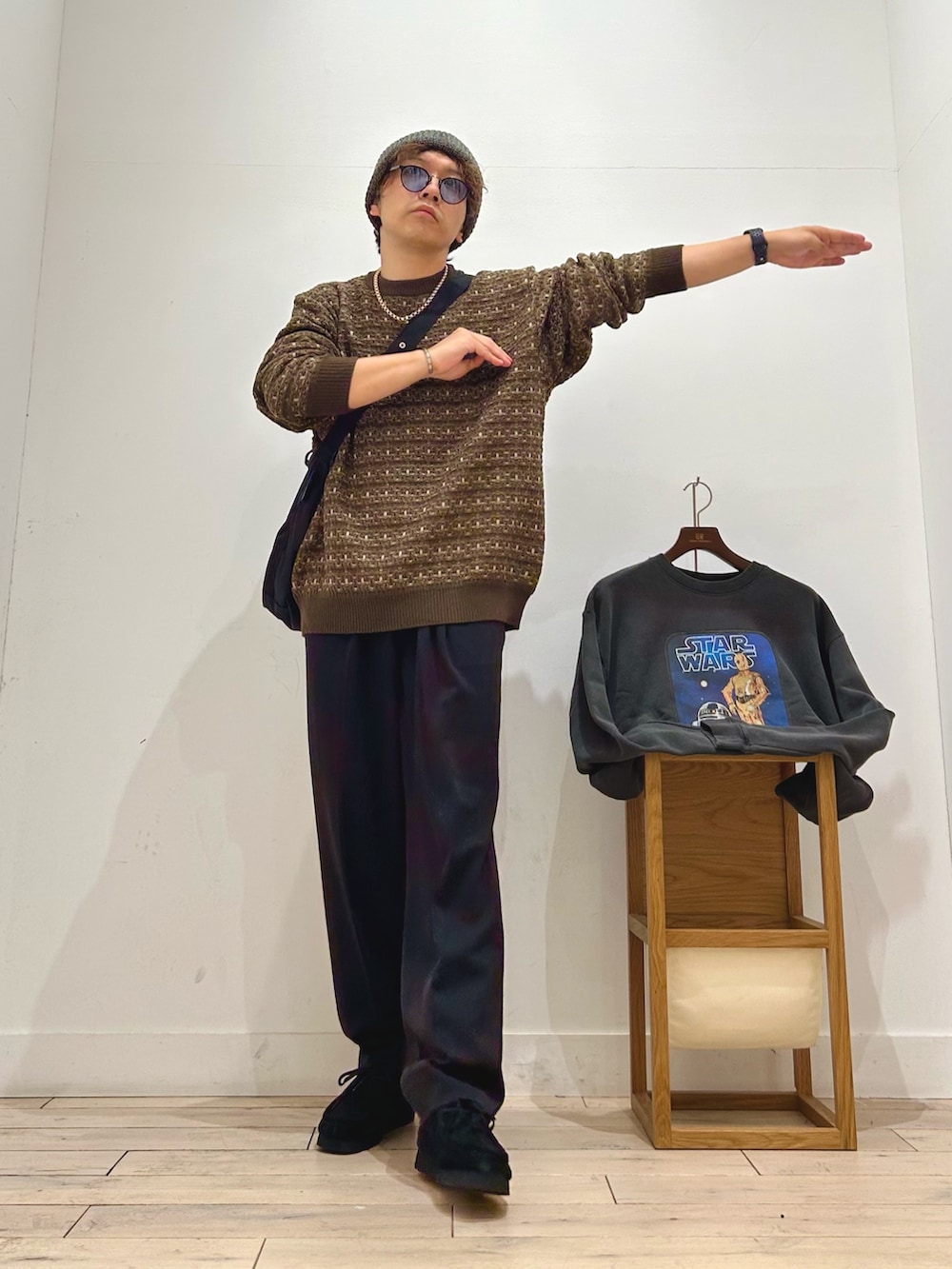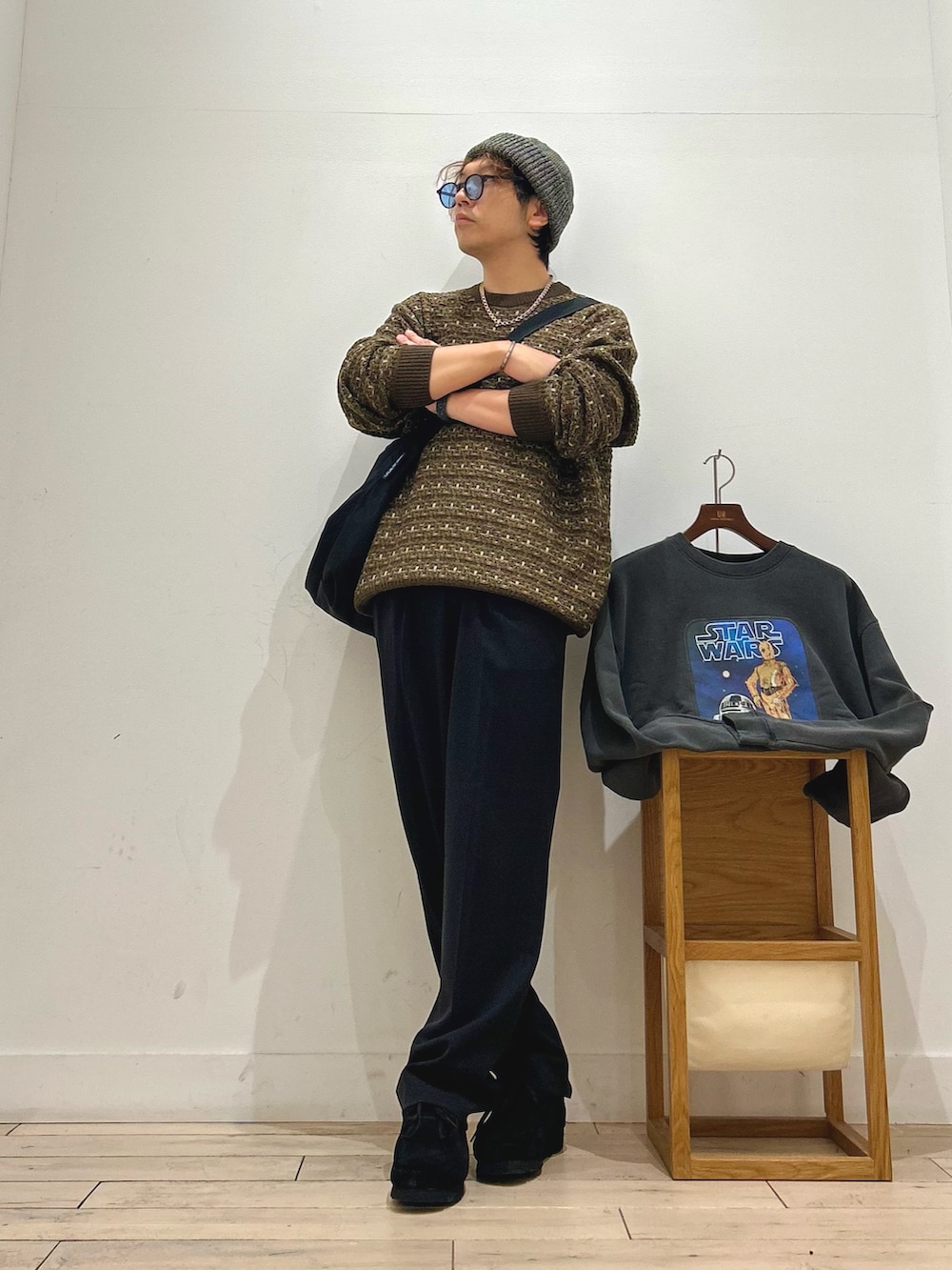 主張し過ぎない柄なのにしっかり存在感があるニットなので、1枚で着ても目を惹くし、インナー使いの場合、コートなどは無地が多いと思うので差し色にもってこいなアイテムでっす😆