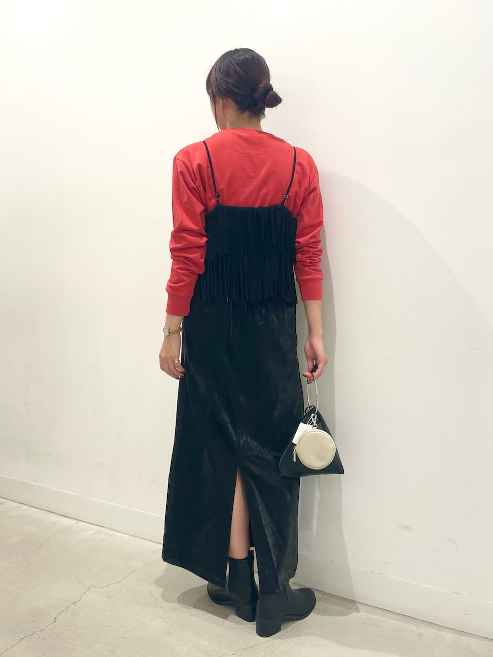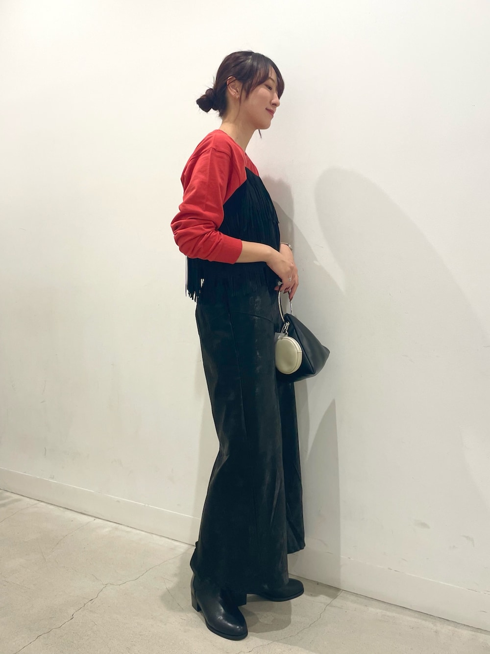 フリンジやレザーなど秋らしい素材のアイテムを使いました◎