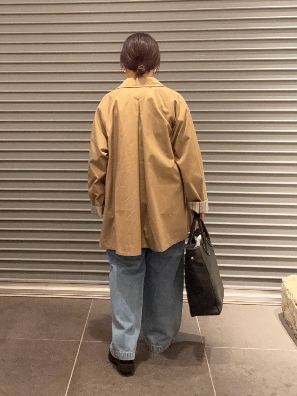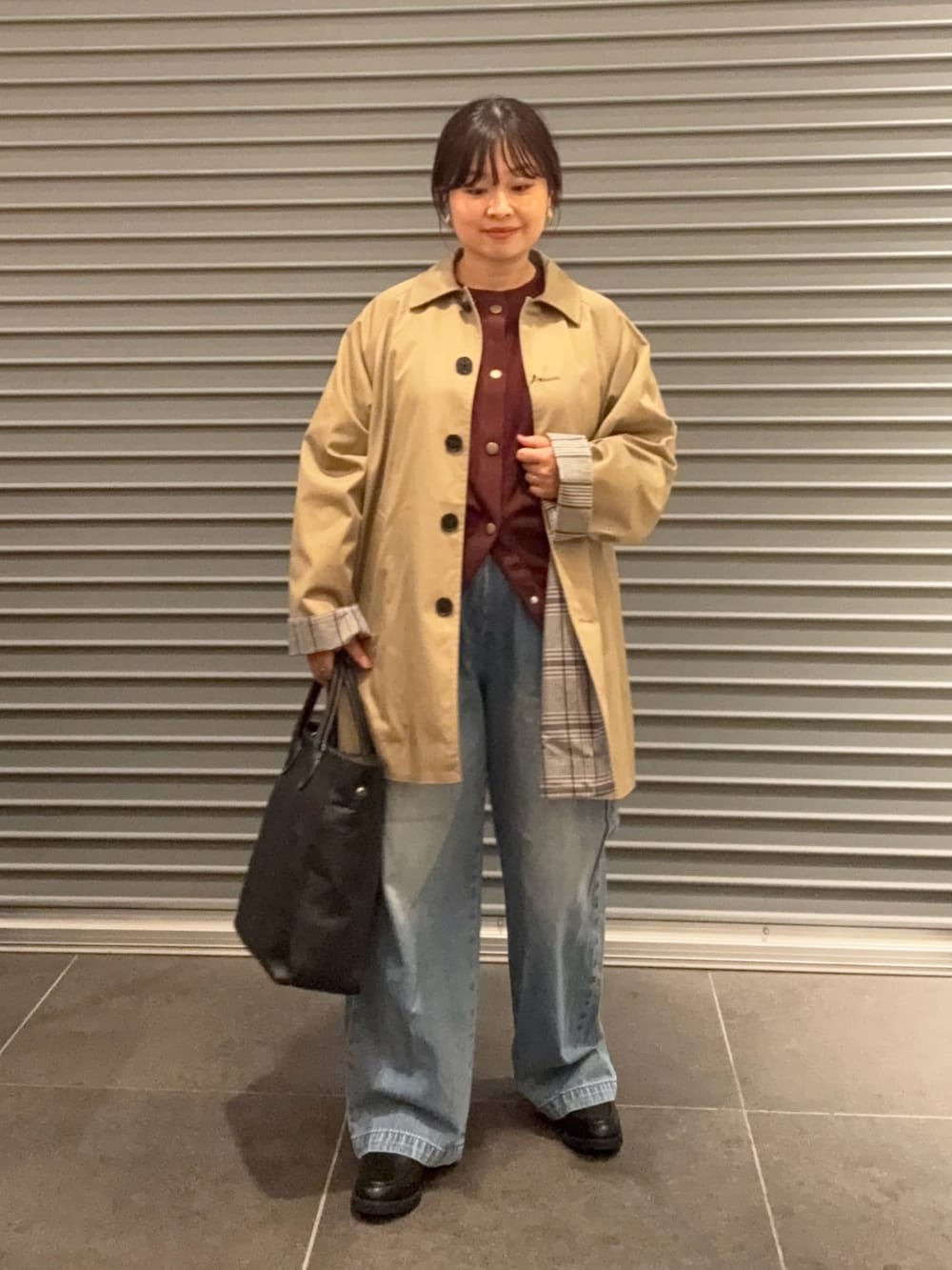 朝晩のアウターにステンカラーコートを合わせました。Aラインのミディアム丈なので、小柄な方でもバランス取りやすいです。ゆったりシルエットで程よく厚みがある素材なので、秋冬〜春先まで長く着れます。