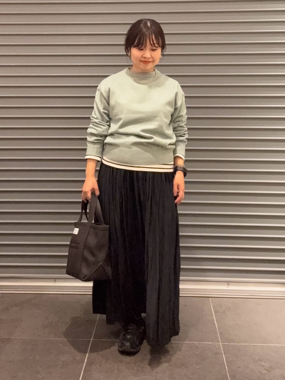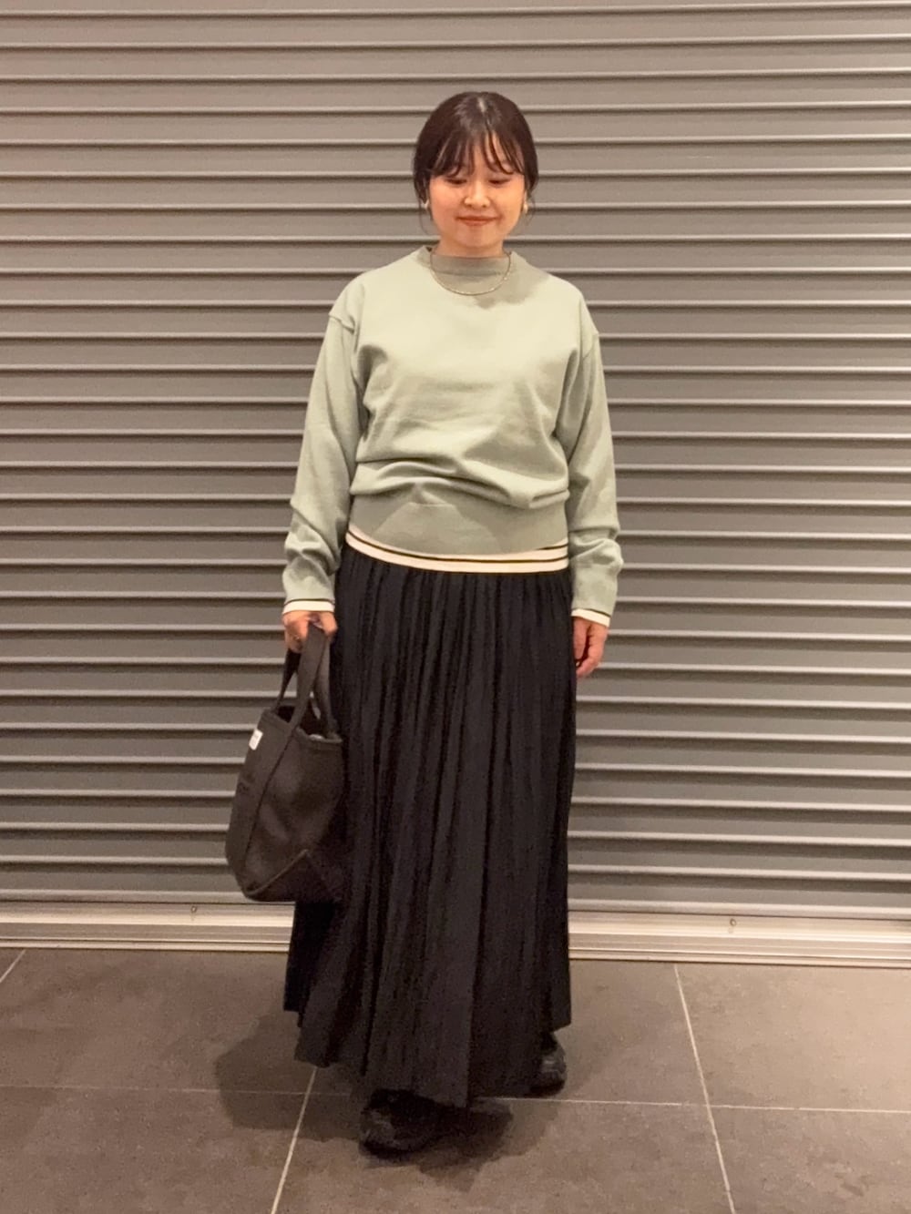 200日ニットにプリーツスカートでカジュアルお出かけコーデにしました。