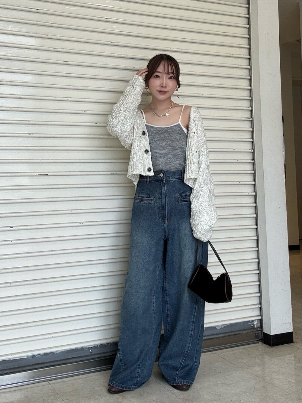 ワイドデニムにショート丈のカーディガンを合わせて、スタイルアップ効果のあるバランスに仕上げました!