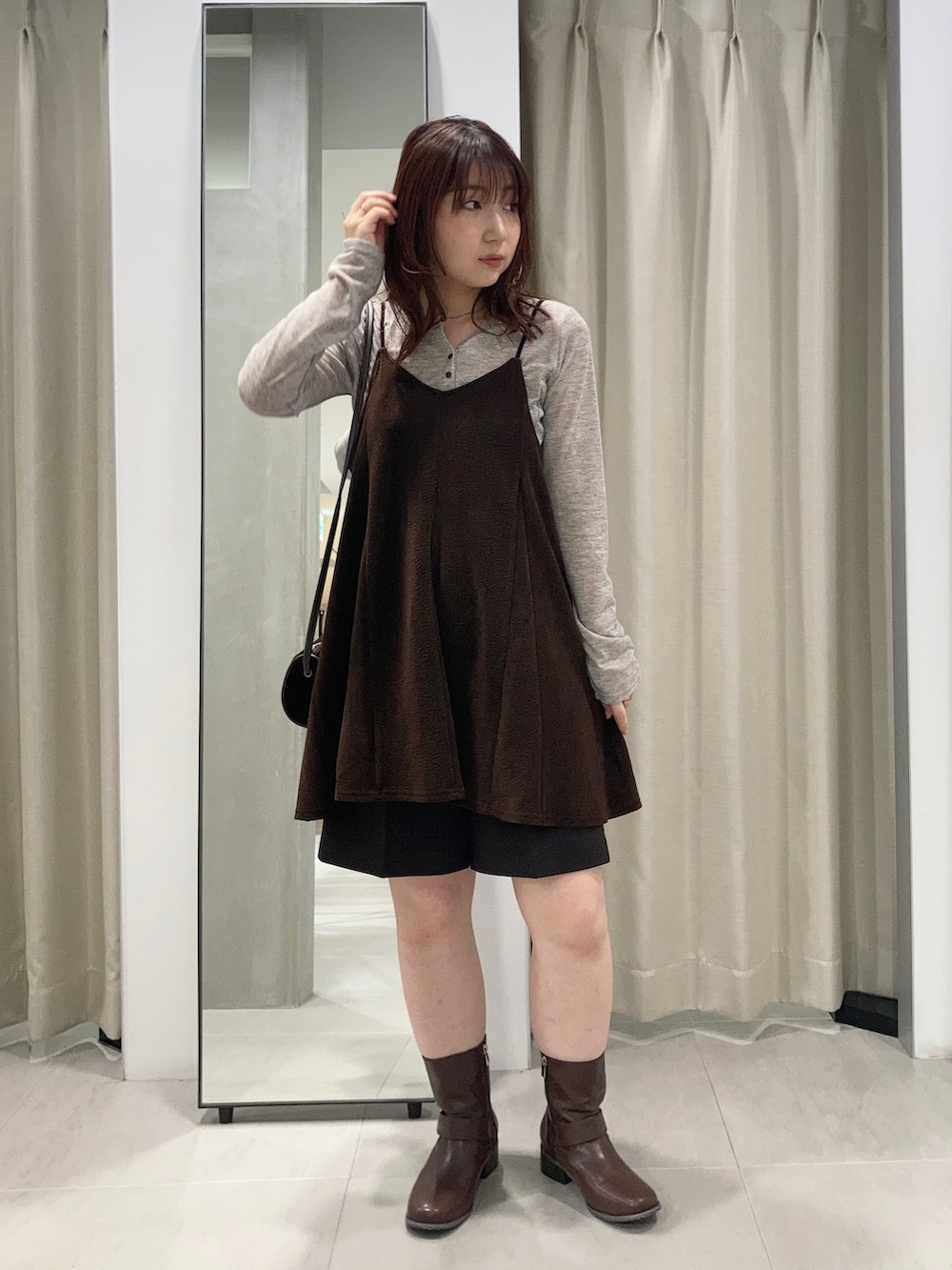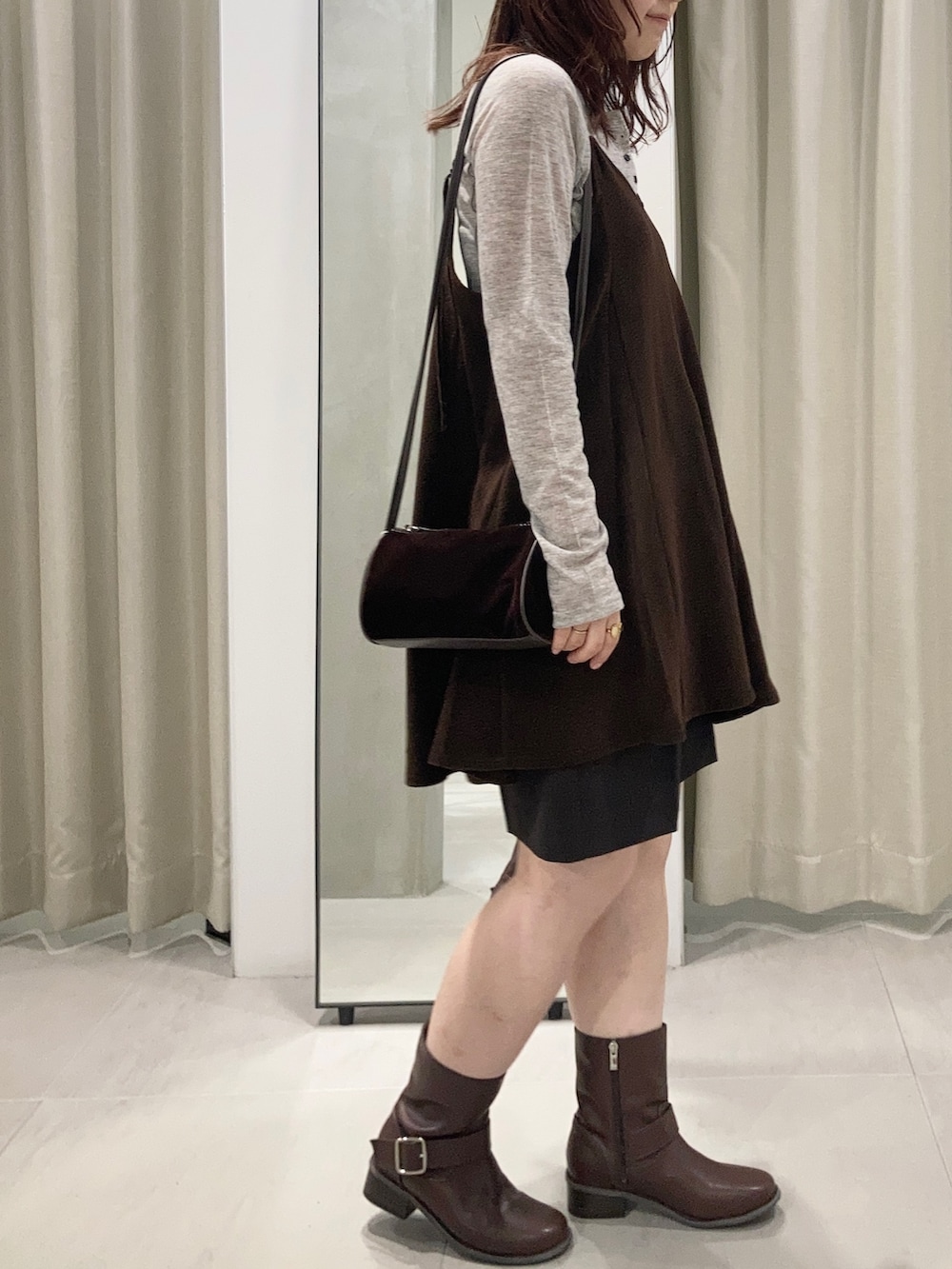 あたたかみのある素材のフレアシルエットがかわいいミニワンピースが主役のコーデです♡