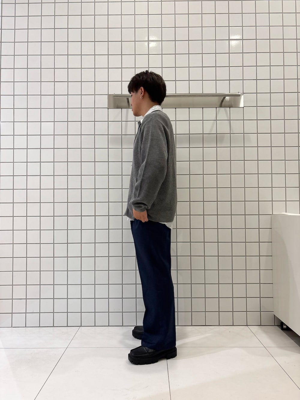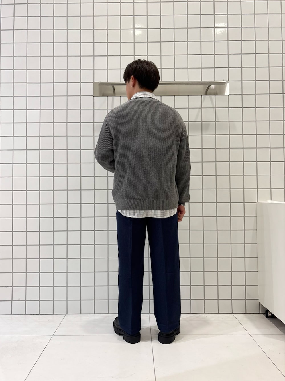ダブルジップが可愛いニットカーデとスラックスのキレイめコーデ!
