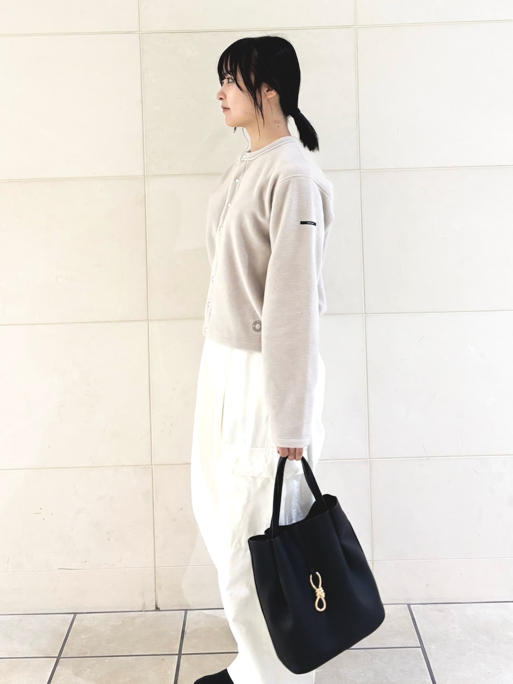 ショート丈なので低身長の方に本当におすすめで、かなりスタイルアップしてくれます!ボタンを外してワンピースの上から軽い羽織として使うのも良いと思います◎腕のところのロゴのワンポイントがアクセントになります⭐️