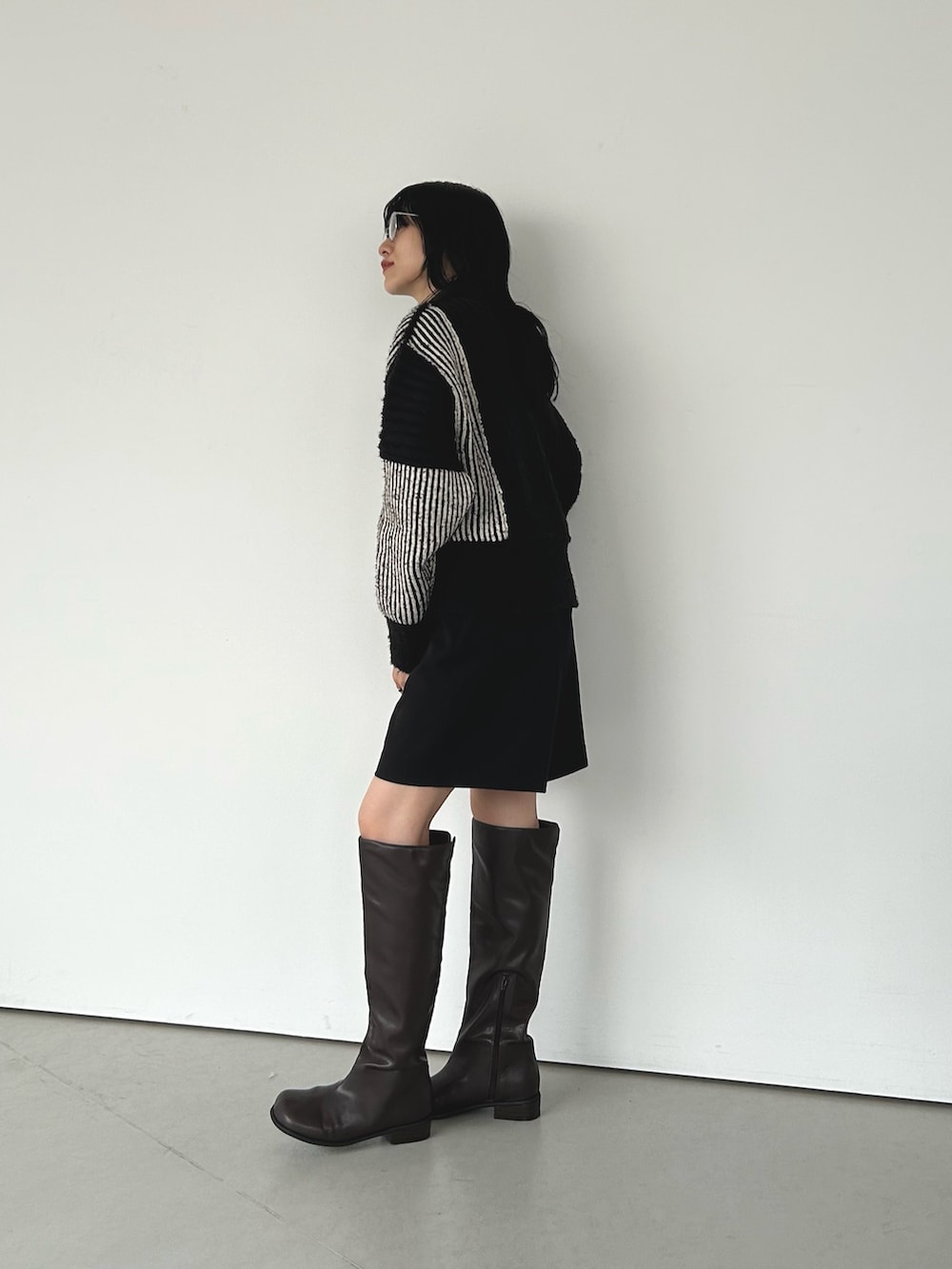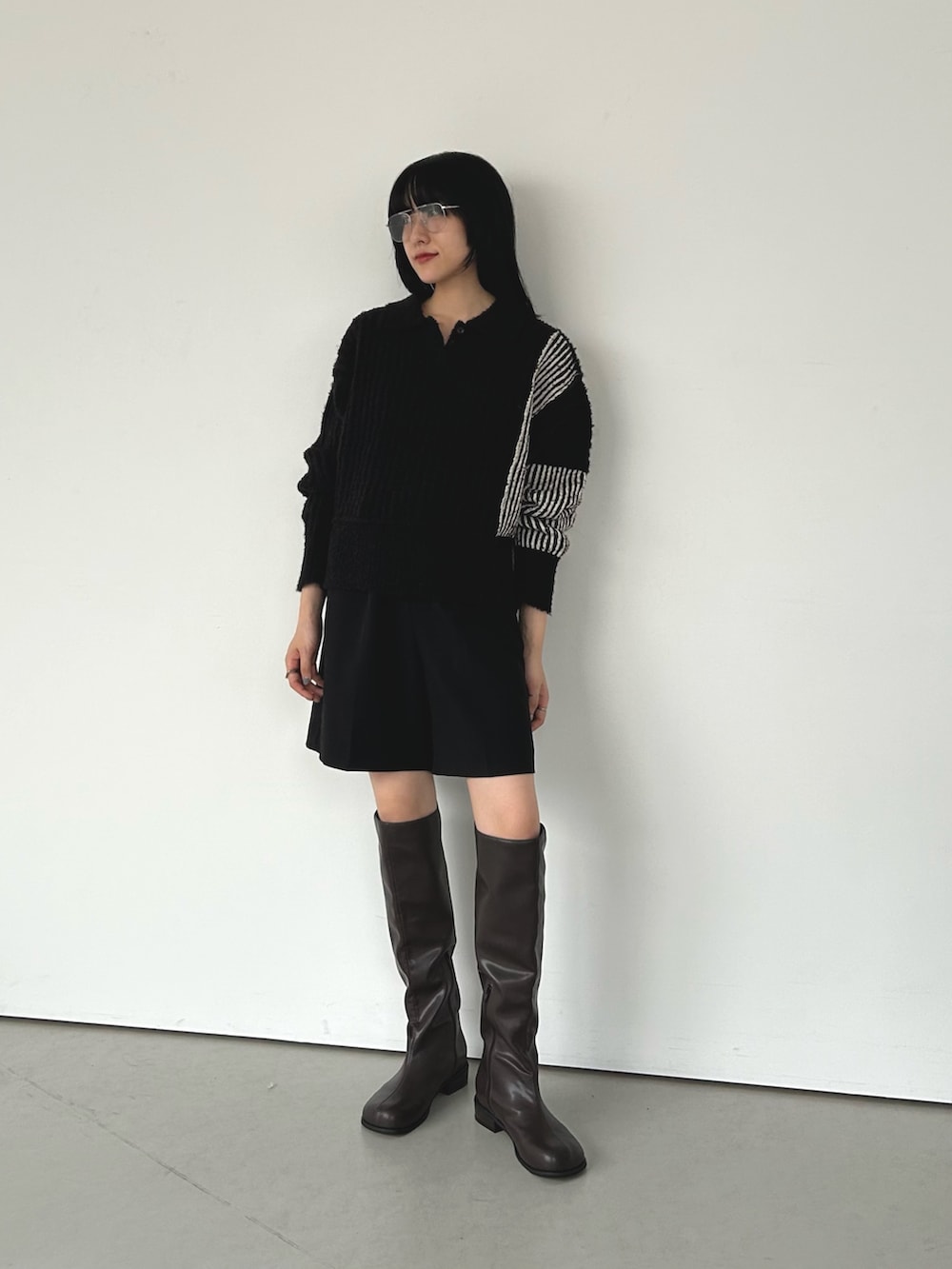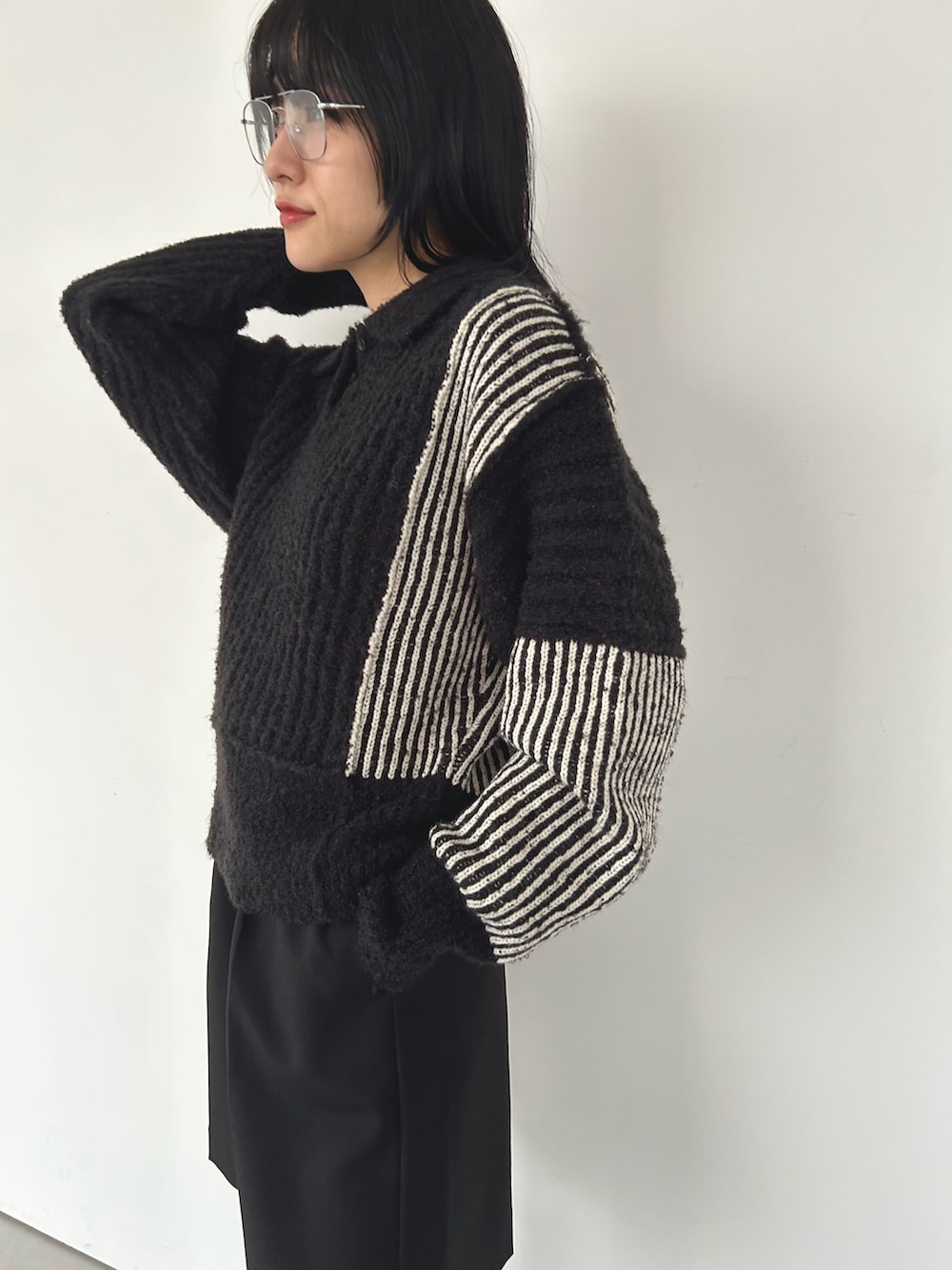 バイカラーのリブニットにショートパンツを合わせて着てみました。