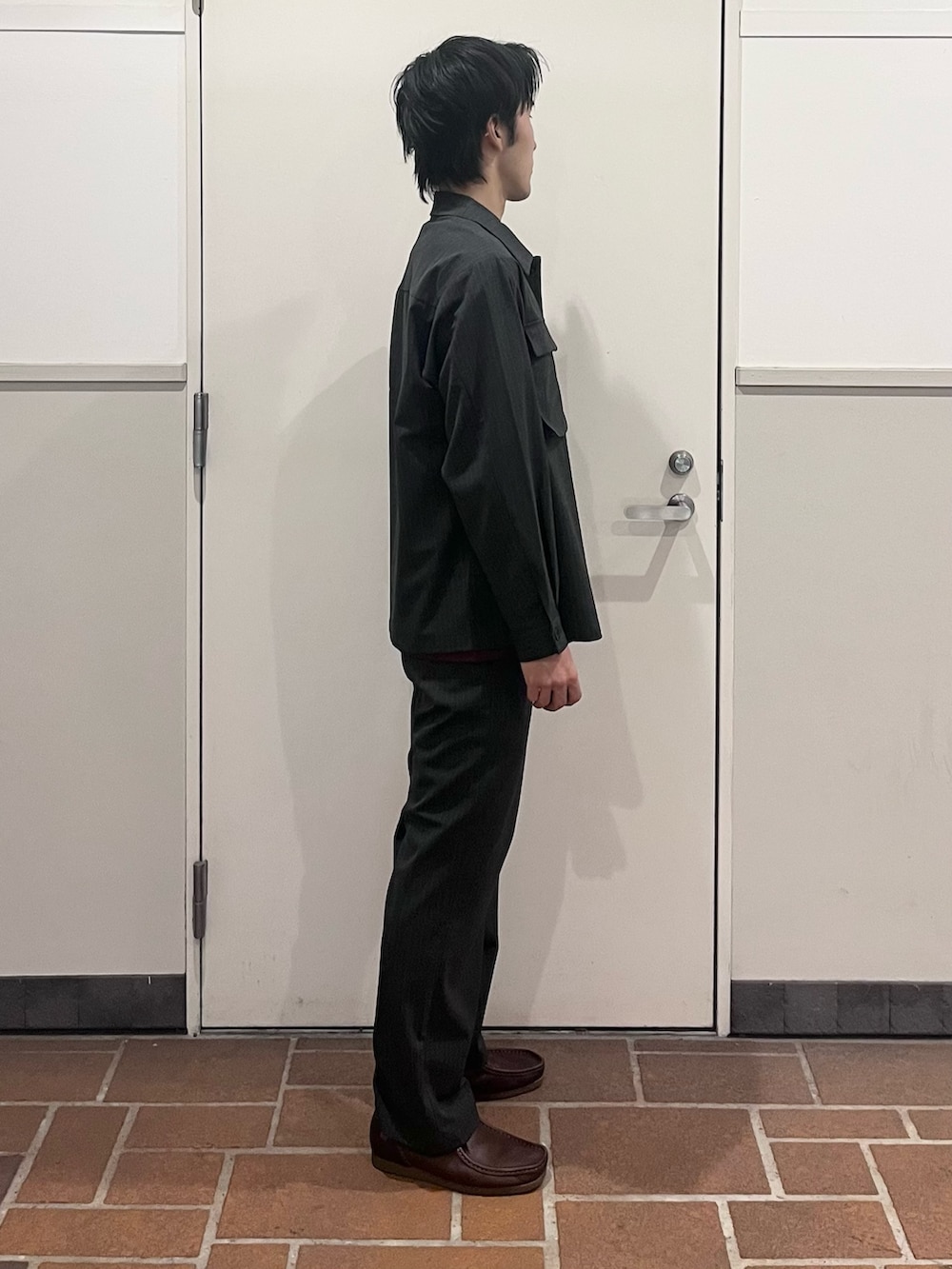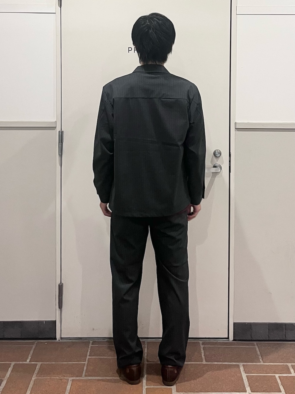 上黒白の無地で合わせるくらいならぜひセットアップで、紫のロンTもチャコールといい感じです。
