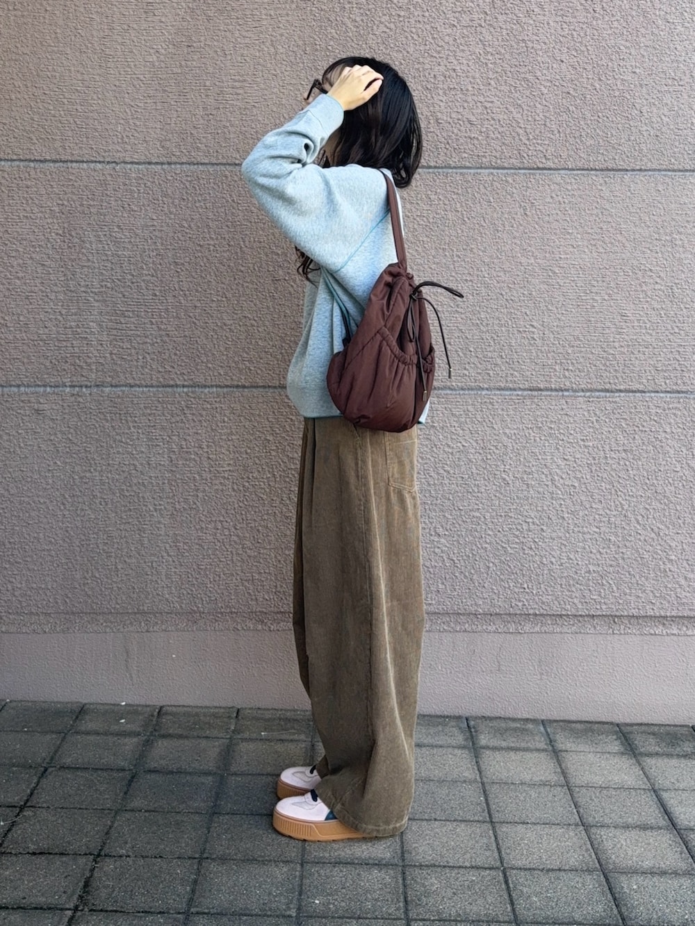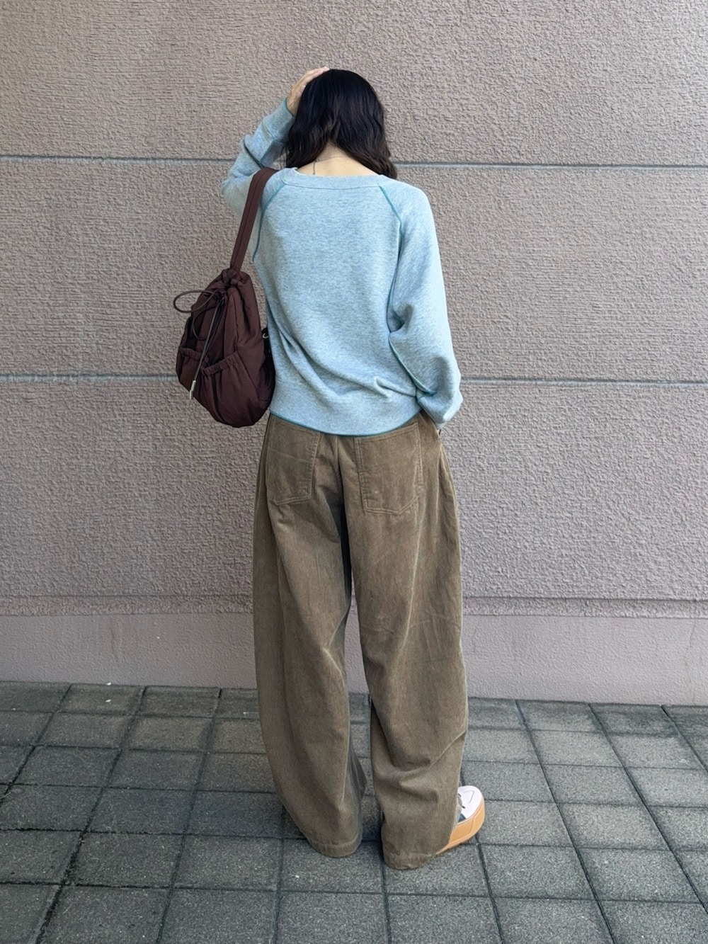 ボトムスはバレルパンツでシルエットがとても可愛いアイテムになっています!コーデュロイになっているので秋冬感がとってもあって可愛いです!