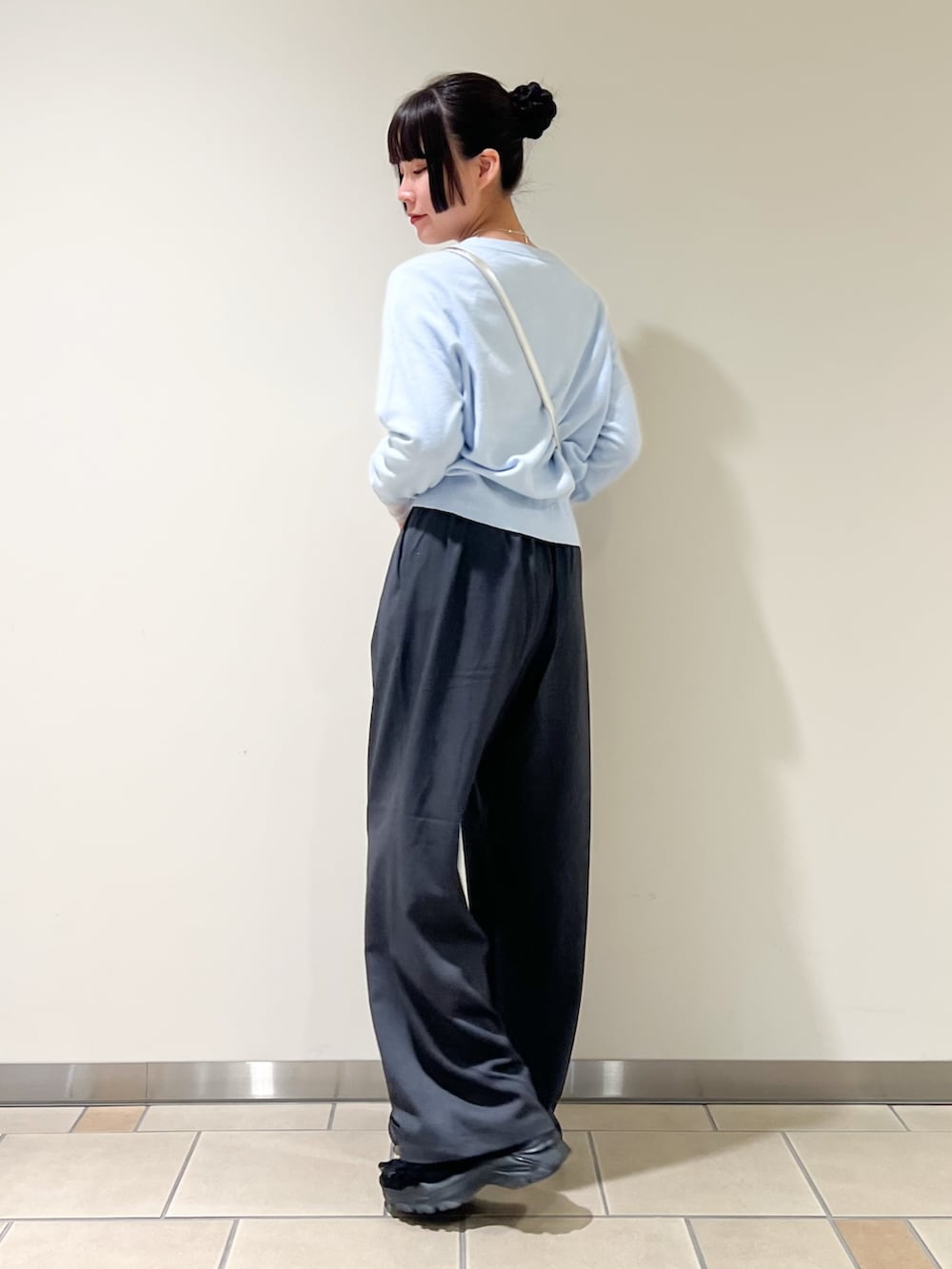 ウエストの後ろ側がゴムなので履きやすく、タックが入ることによって腰周りのシルエットがすっきり見えします!⟡.·