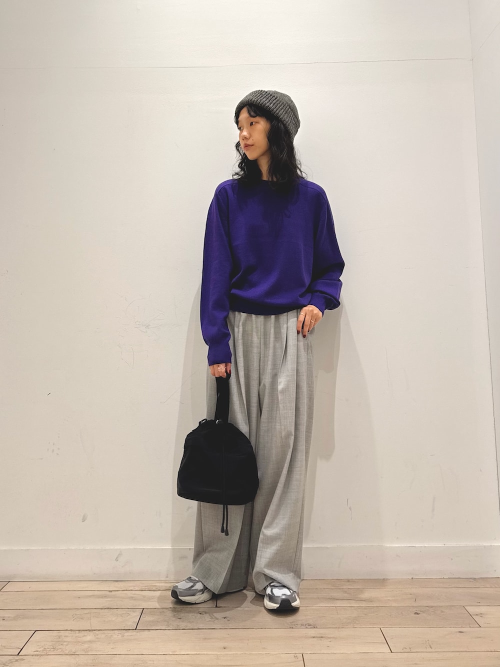 パンツは薄手ですがウールライクで季節感あるアイテムです◎