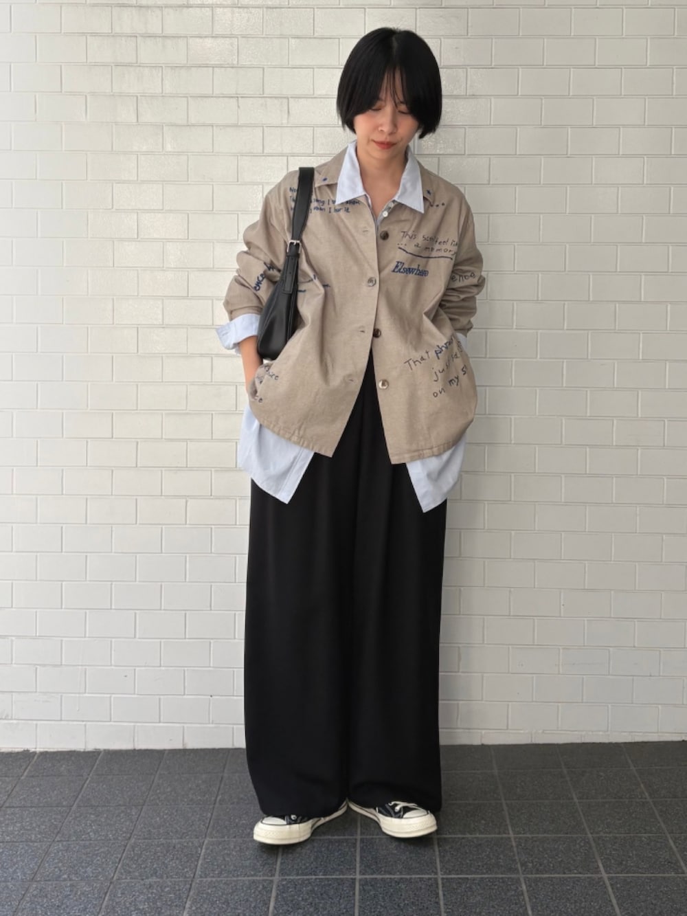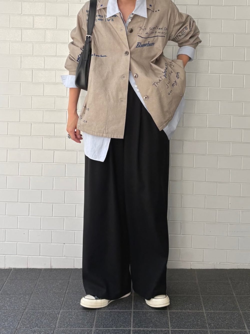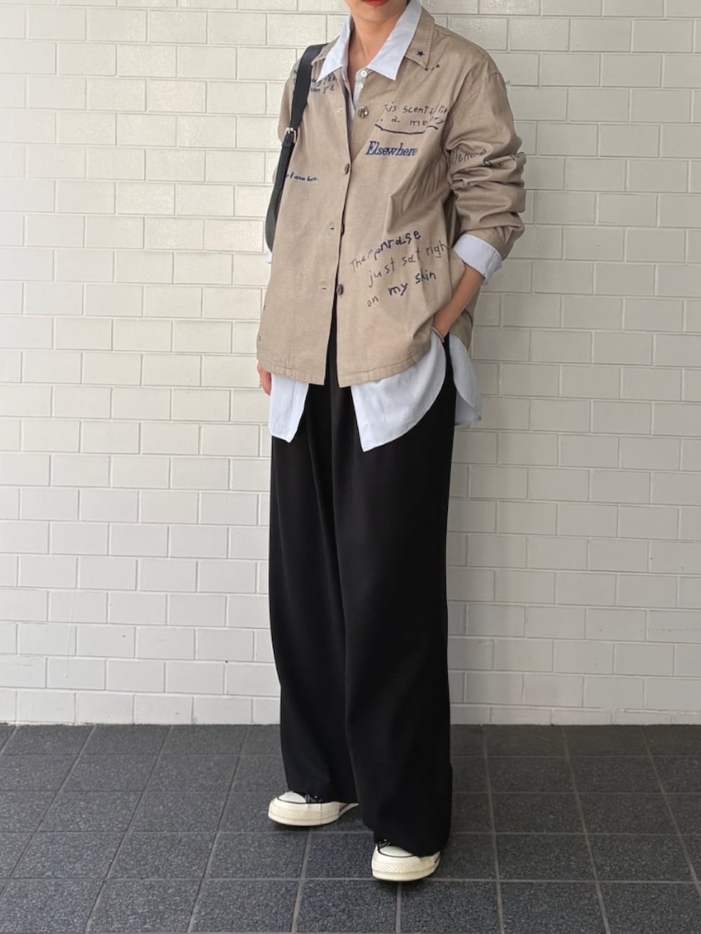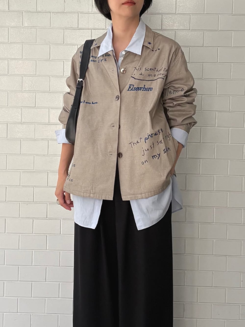 襟の裏に入った言葉や小さなハートマークなど、キュートなデザインでありながら、シャツのシルエットは美しく、大人な雰囲気に仕上げました。