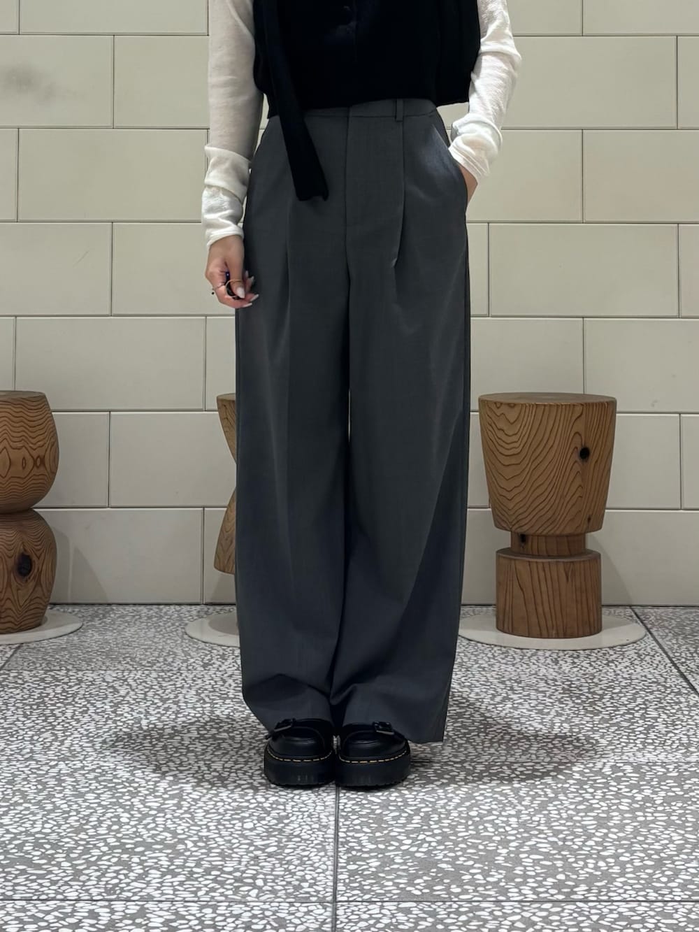 ROSSOウール混防シワハイウエストワイドスラックス