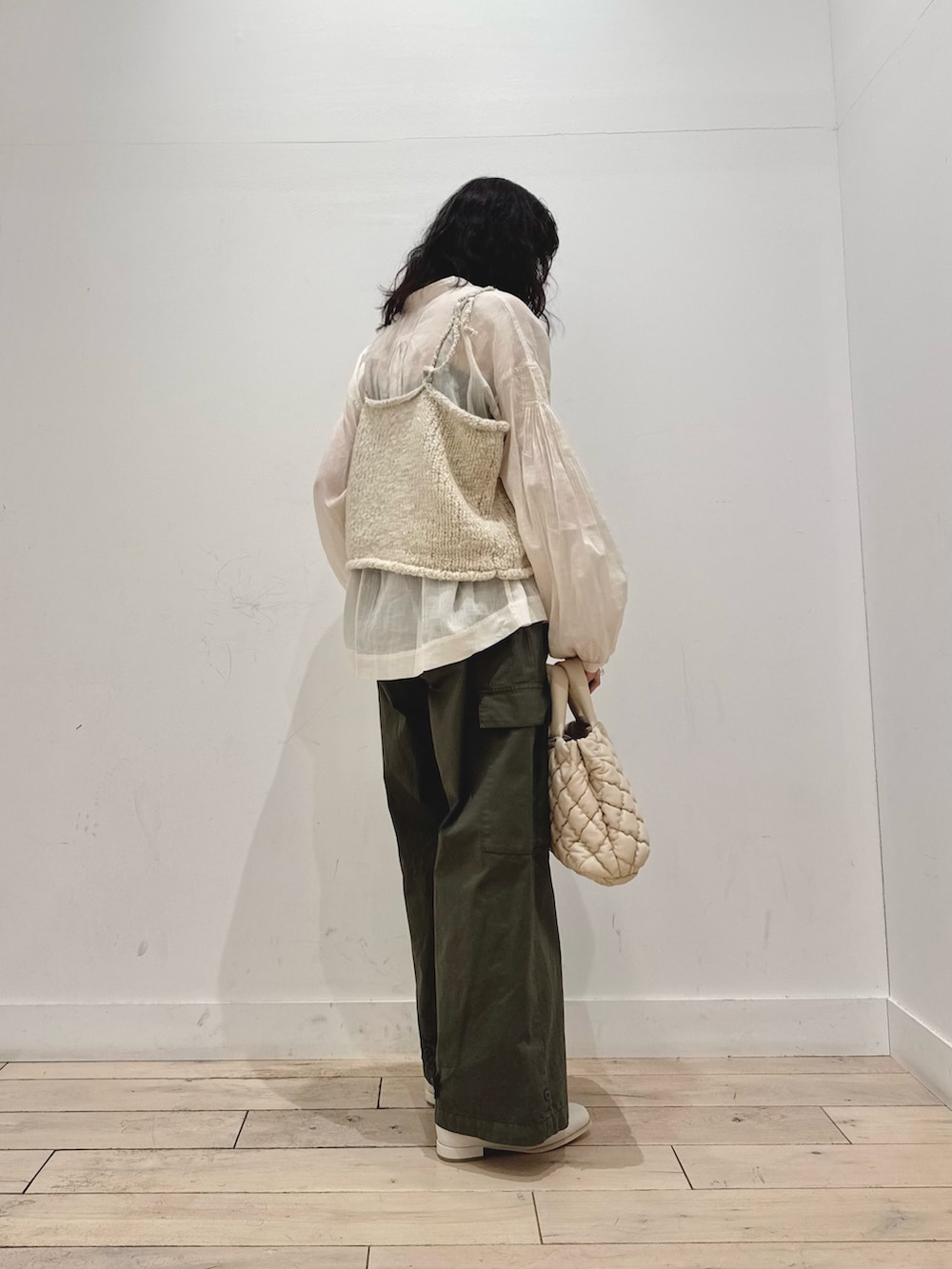 今回はブラウスを入れましたが、身幅広めなので中にスウェットも楽々着れちゃいます◎