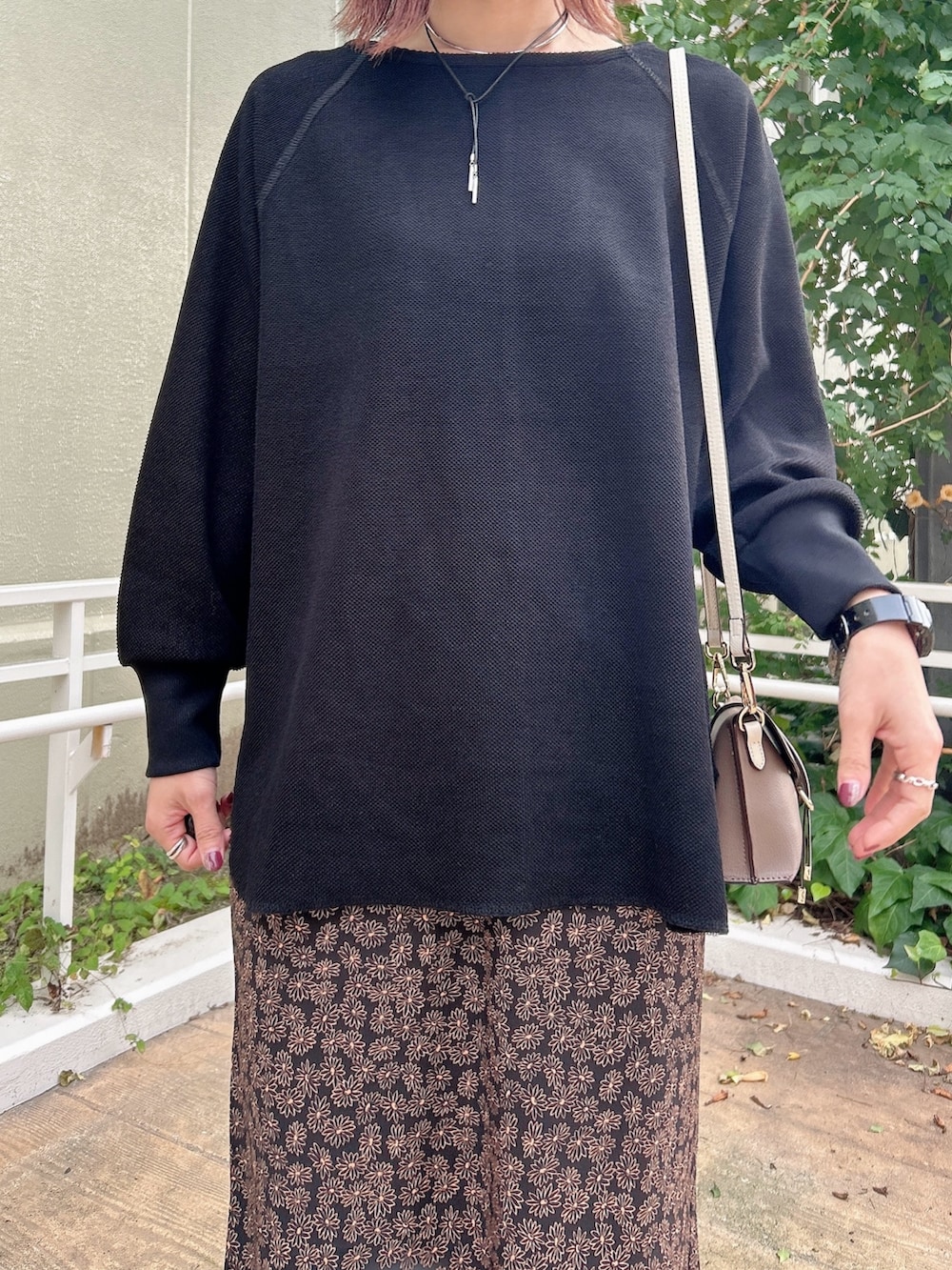 首周りが少し開いていてゆったりしているのでカジュアル感が強すぎず良いです😊