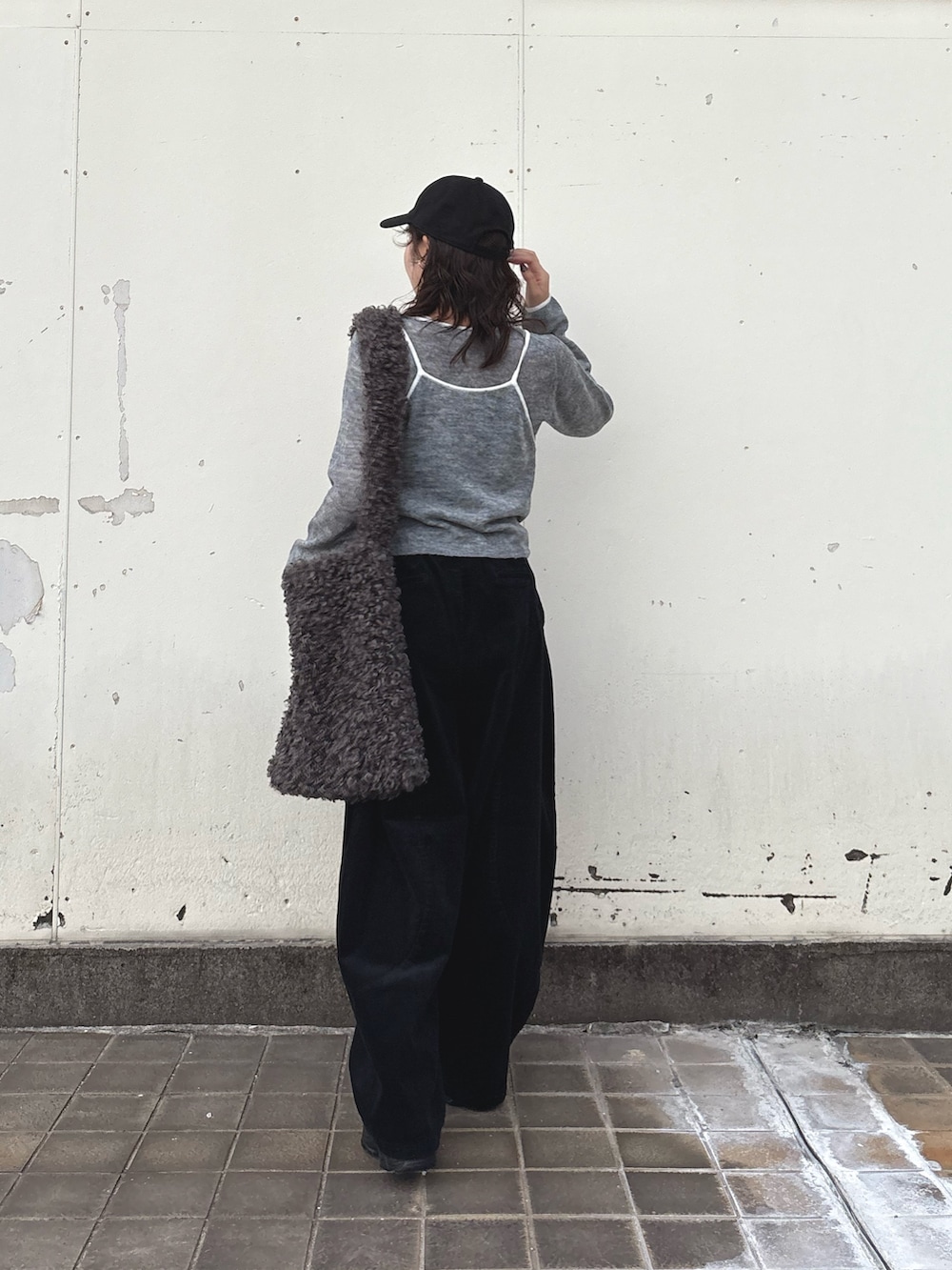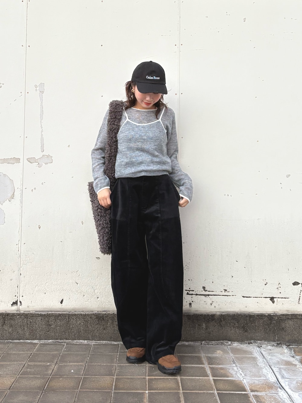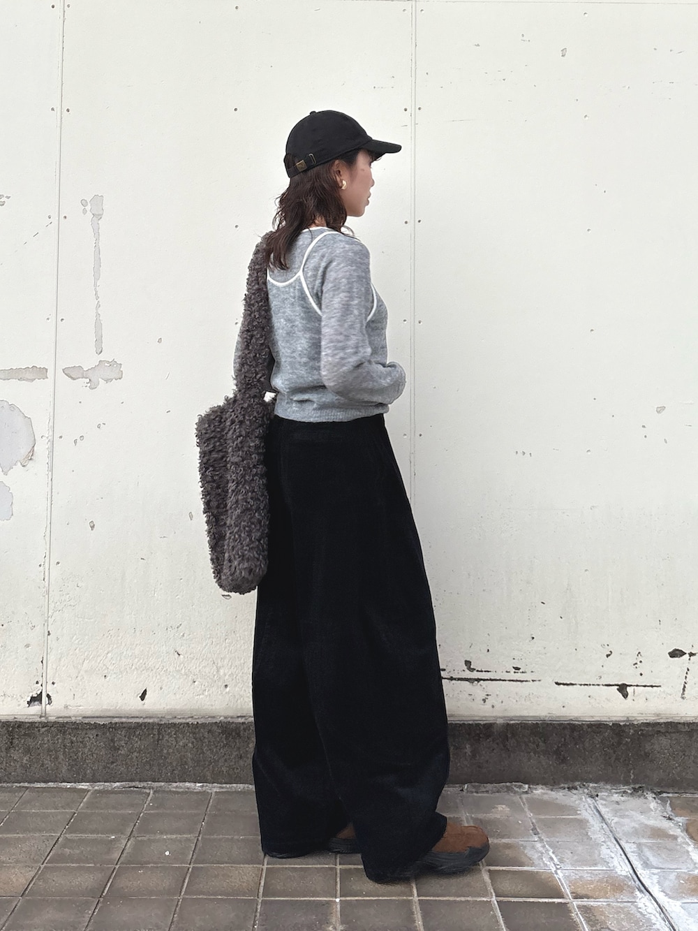 キャップで程よくカジュアルダウンしつつ、ブラウンのファーベストで秋らしいアクセントをプラスしています!