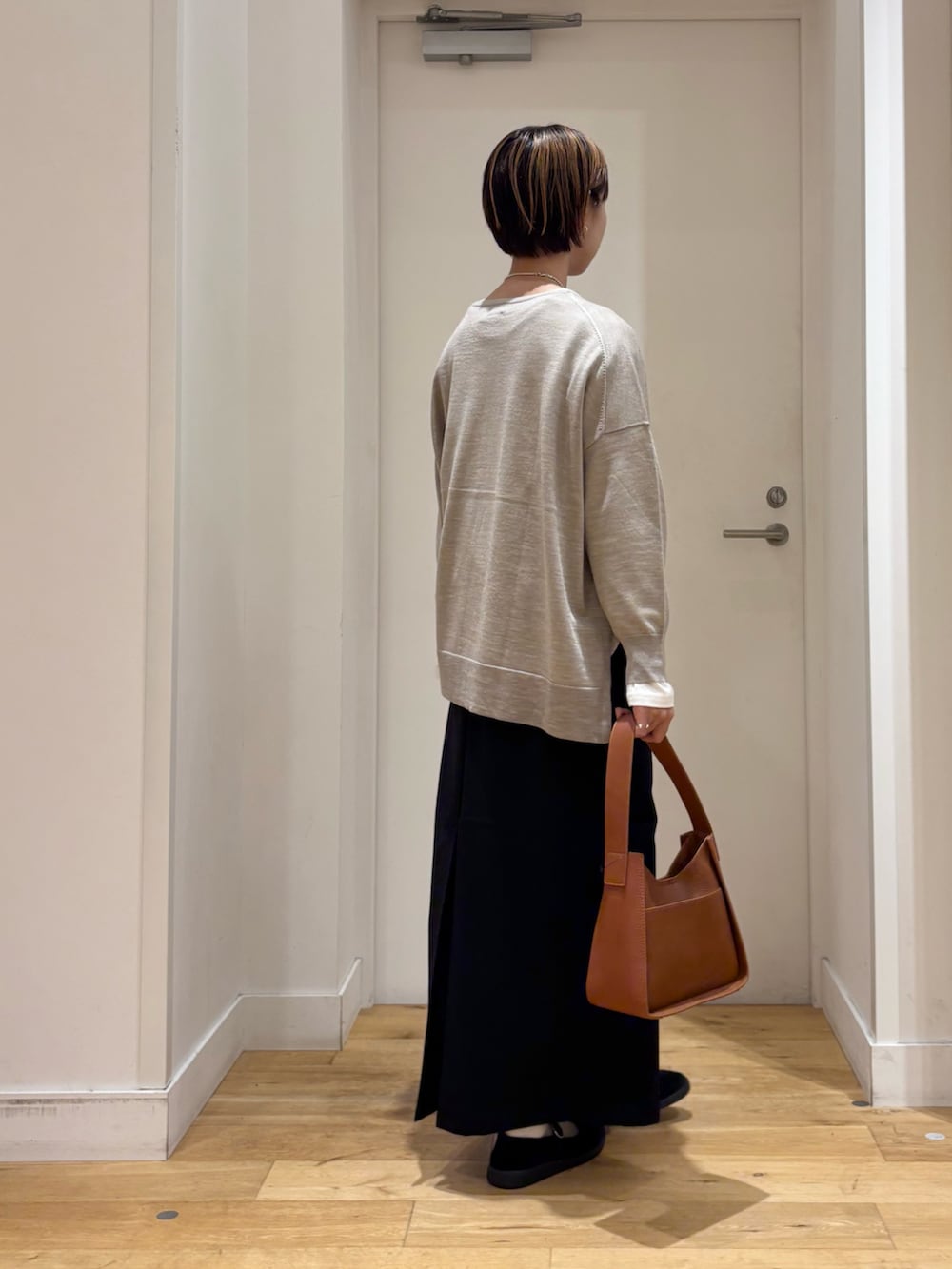 ニットのプルオーバーは、ワイドシルエットですが落ち感のある素材なのでスッキリと上品な印象で着用していただけます!