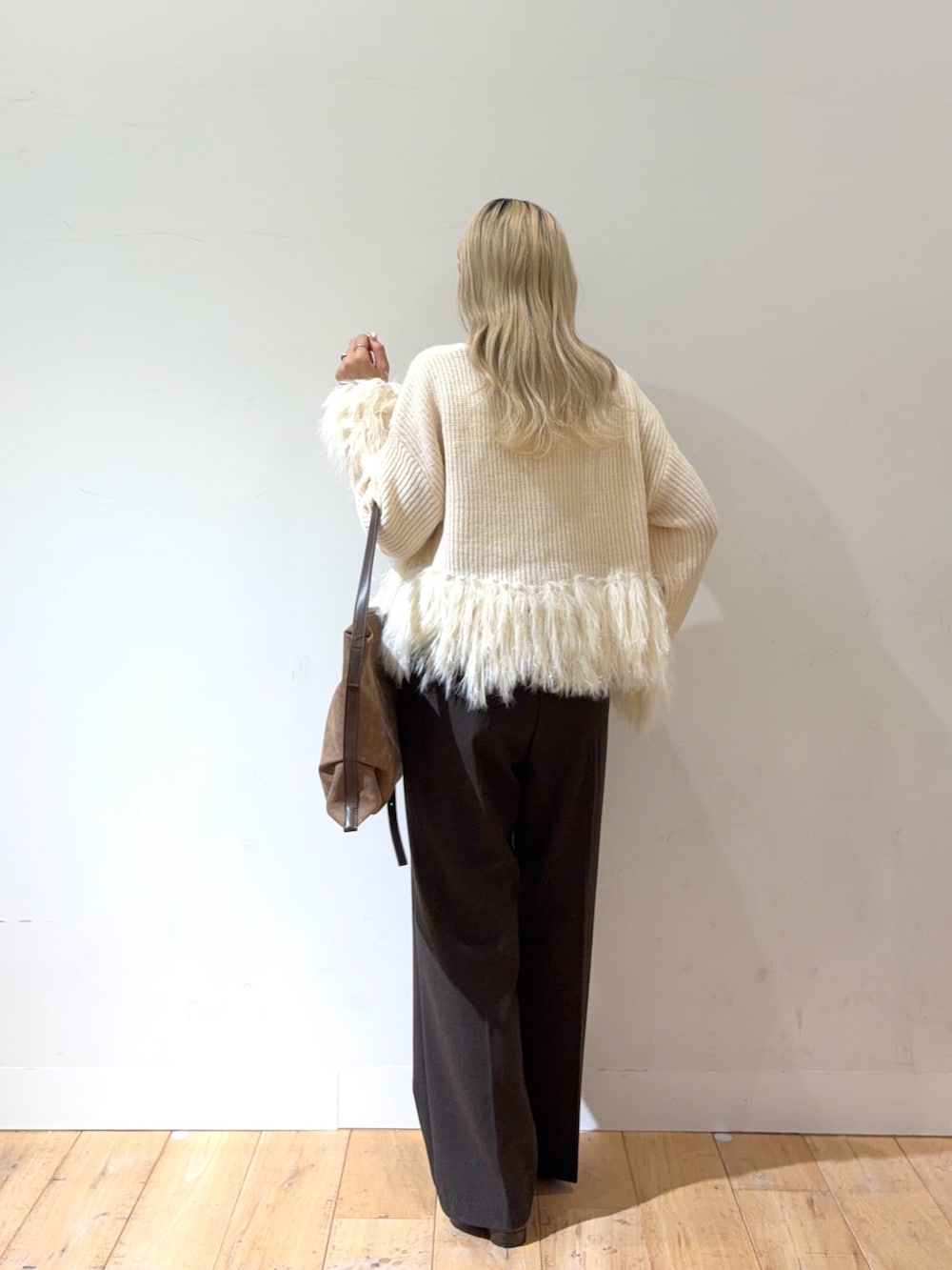 店頭でも早速人気のフェザーニットカーディガンを使ったコーディネートです♡