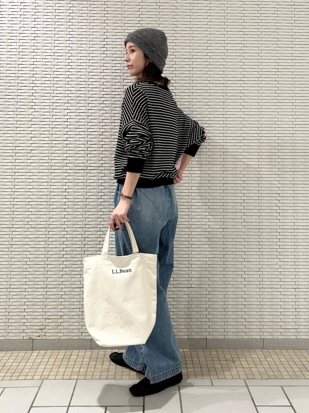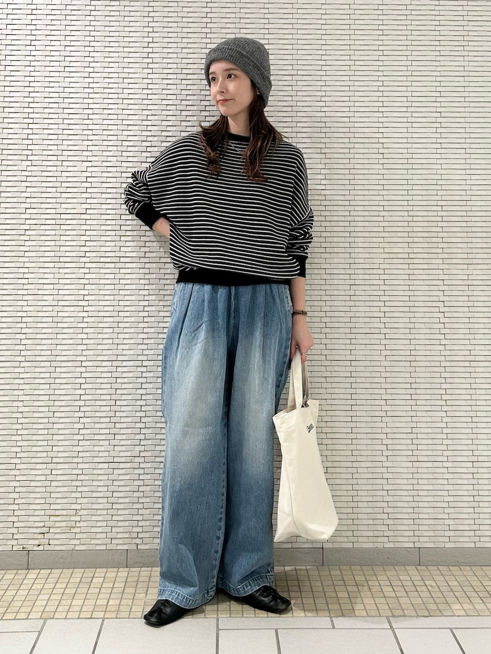 袖や裾にリブが施されているのでメリハリが出て、合わせやすいサイズ感です!