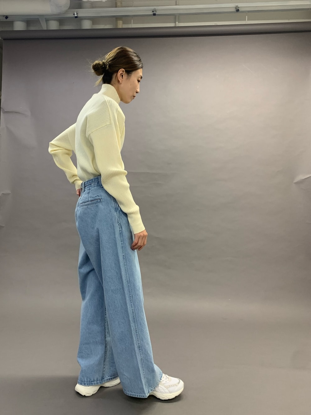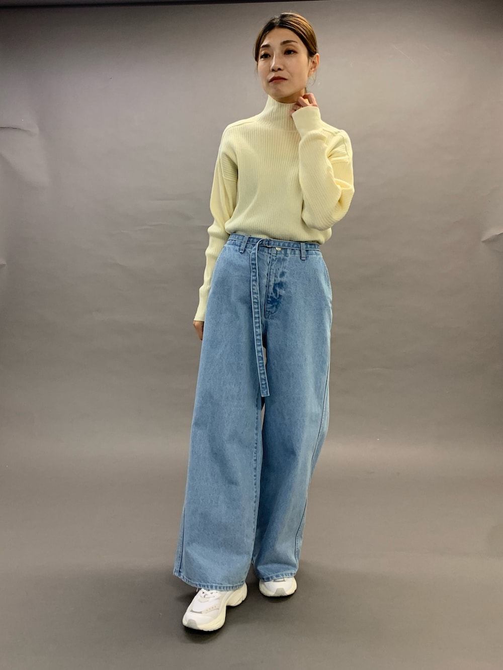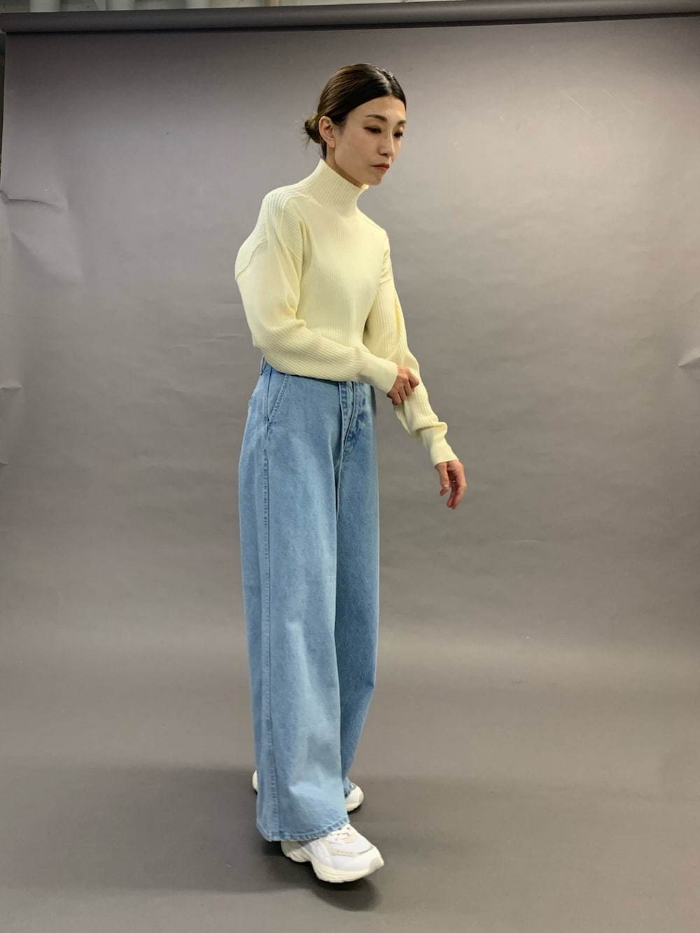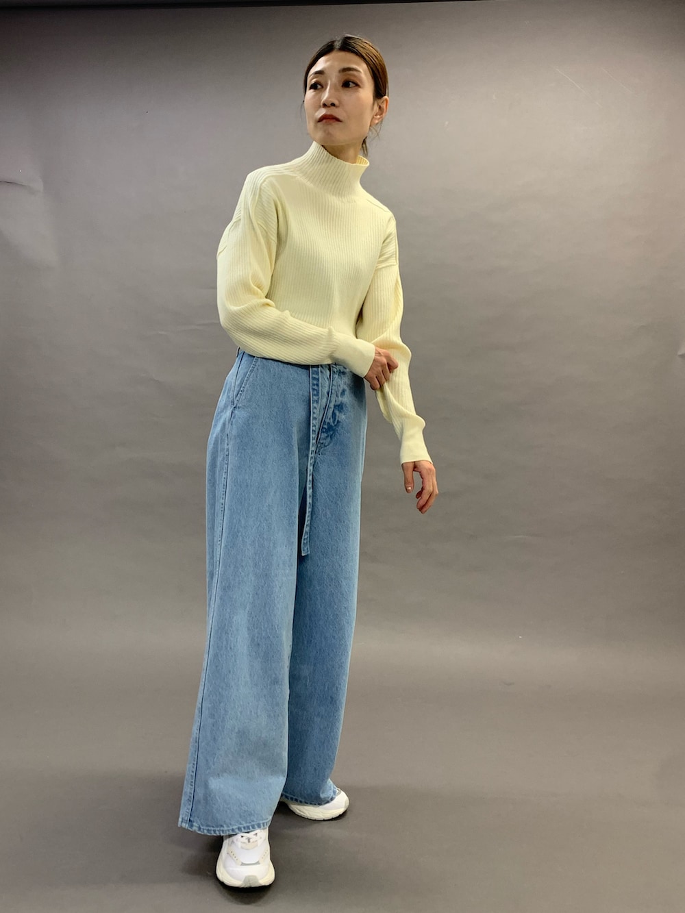 トップスはワイドリブで、首からのスッキリとしたシルエットがジャンパースカートと合わせても重宝します。