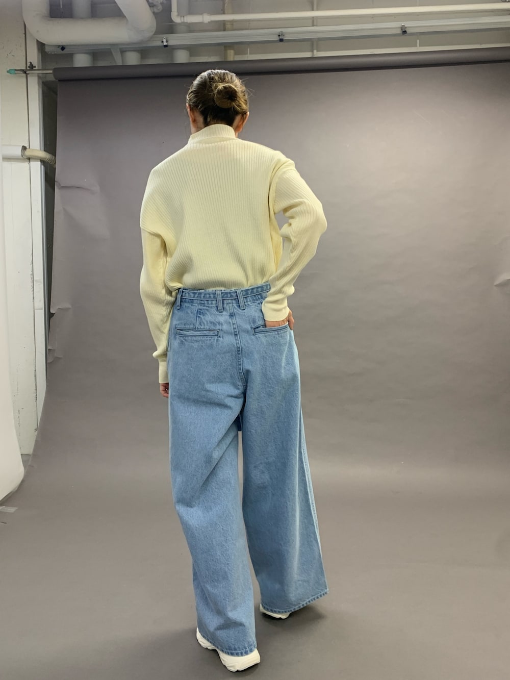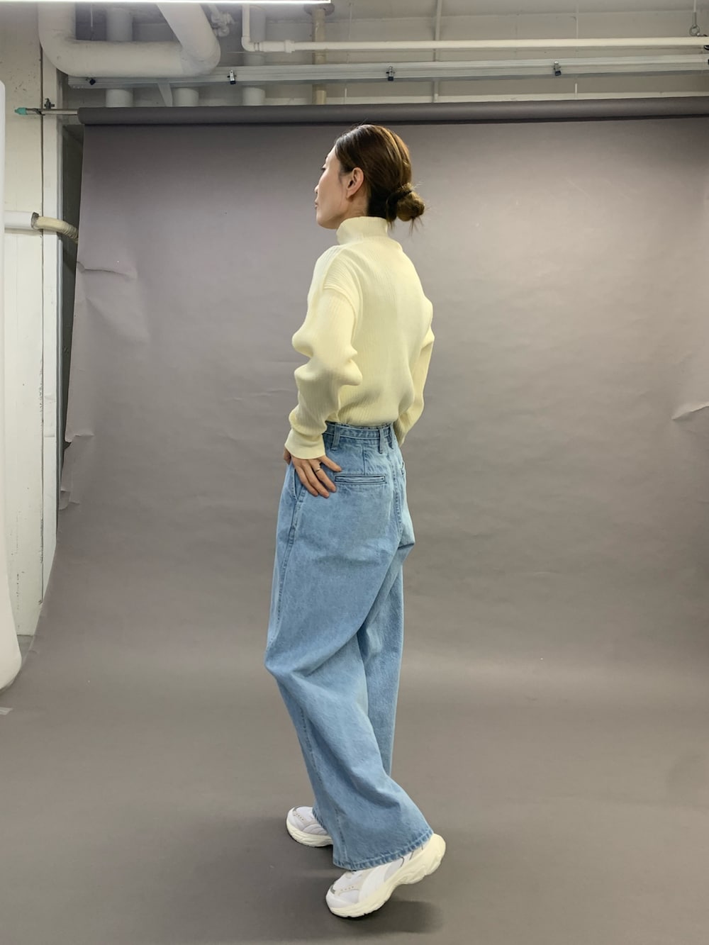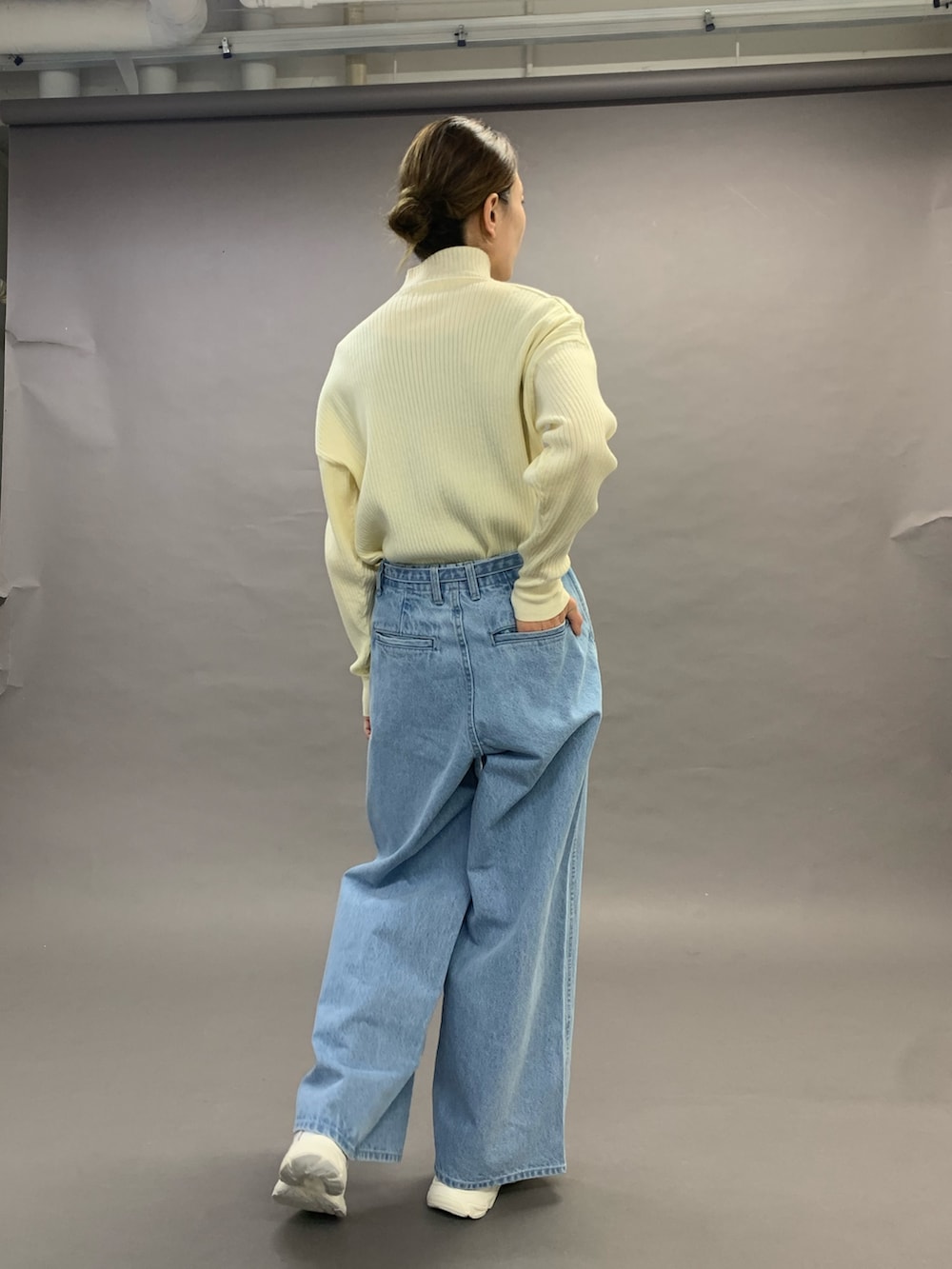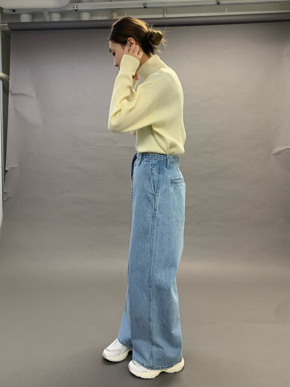 トップスはワイドリブで、首からのスッキリとしたシルエットがジャンパースカートと合わせても重宝します。
