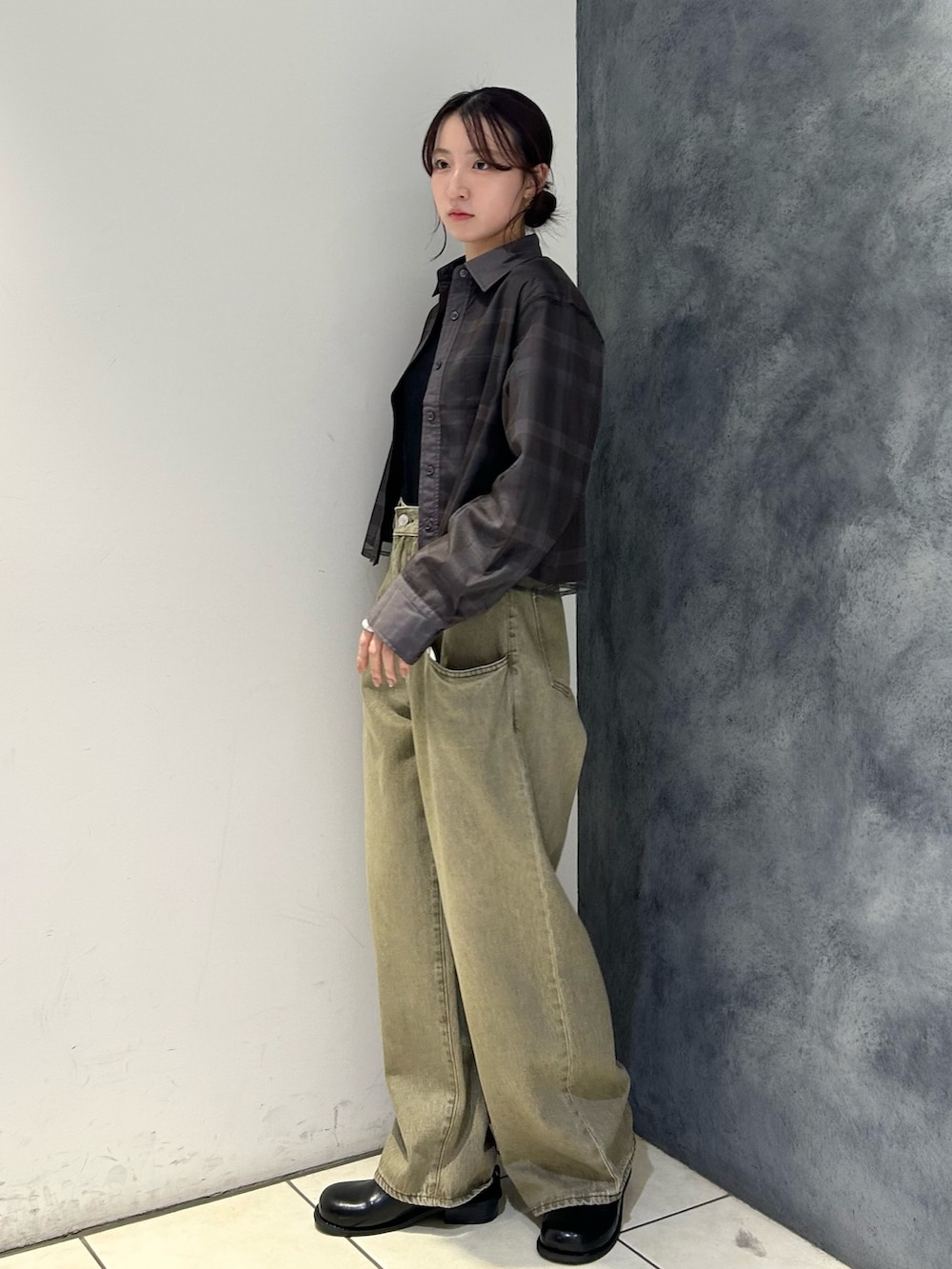 シャツのシルエットはベーシックで、短めの丈感なのでコーディネートのバランスがとりやすいです🎶