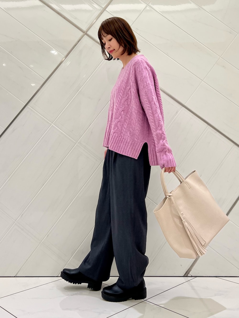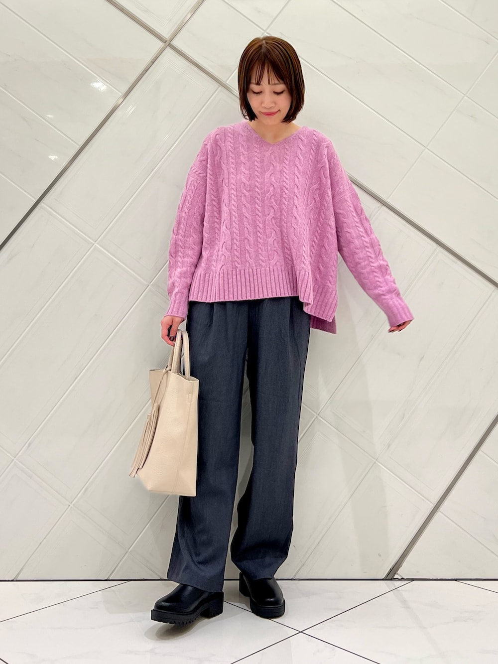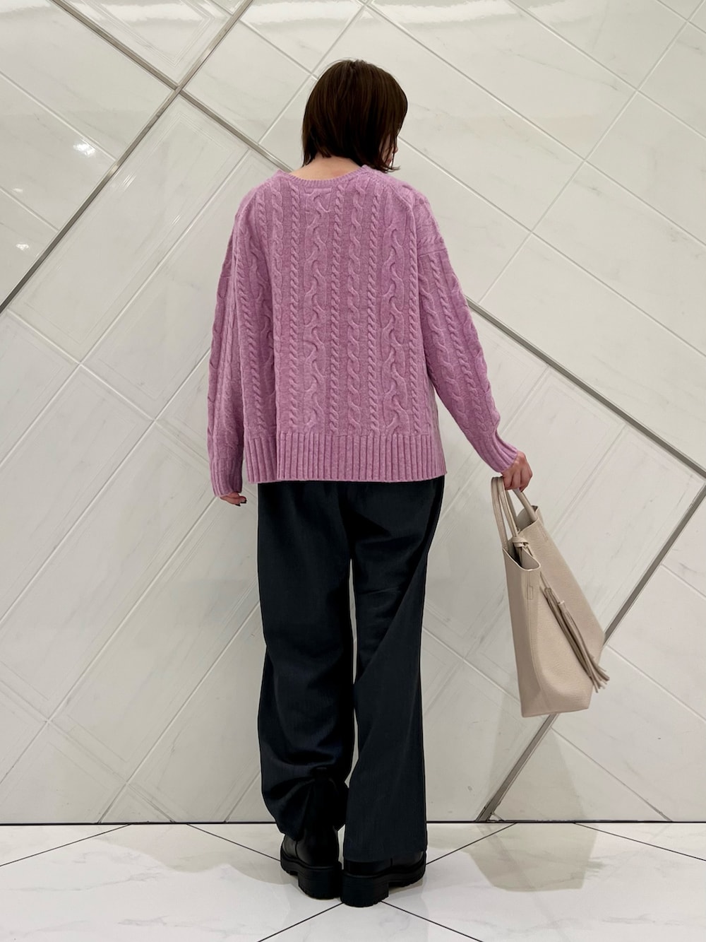 毎年人気のニットは柔らかい肌触りでアラン柄