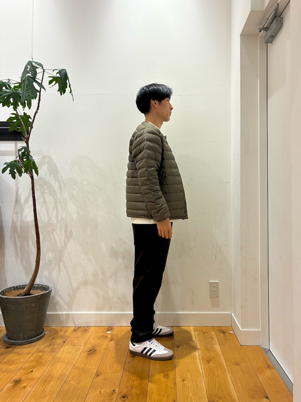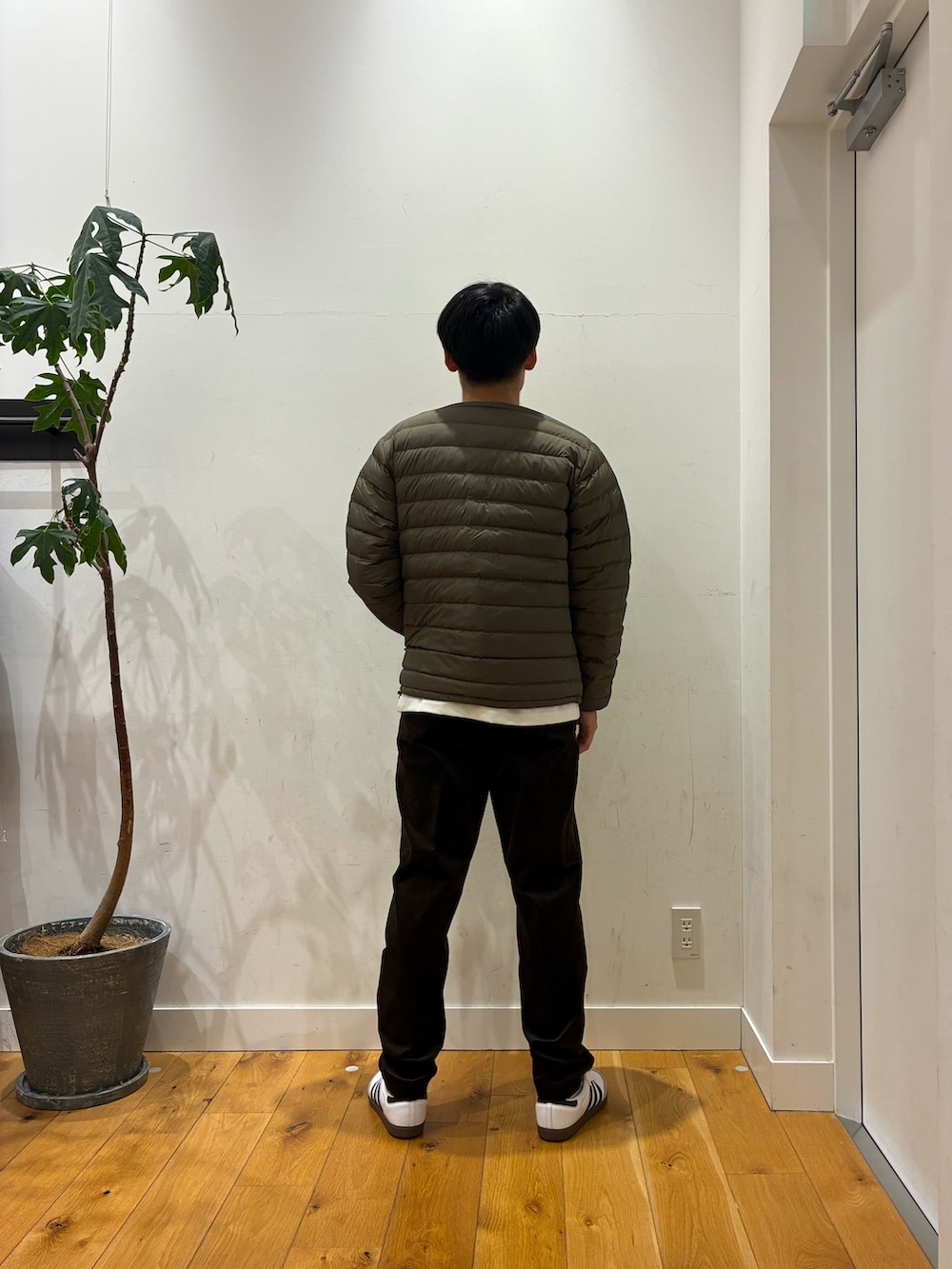 季節に合わせてブラウンのコーデュロイパンツにインナーダウンを着てみました!パンツはスラット見えますがわりとゆったり目の履き心地になっています!ダントンのダウンはとても軽くて暖かく色も豊富になっています!丈感は少し短めになっていてドローコードが付いているので調節しやすいです!