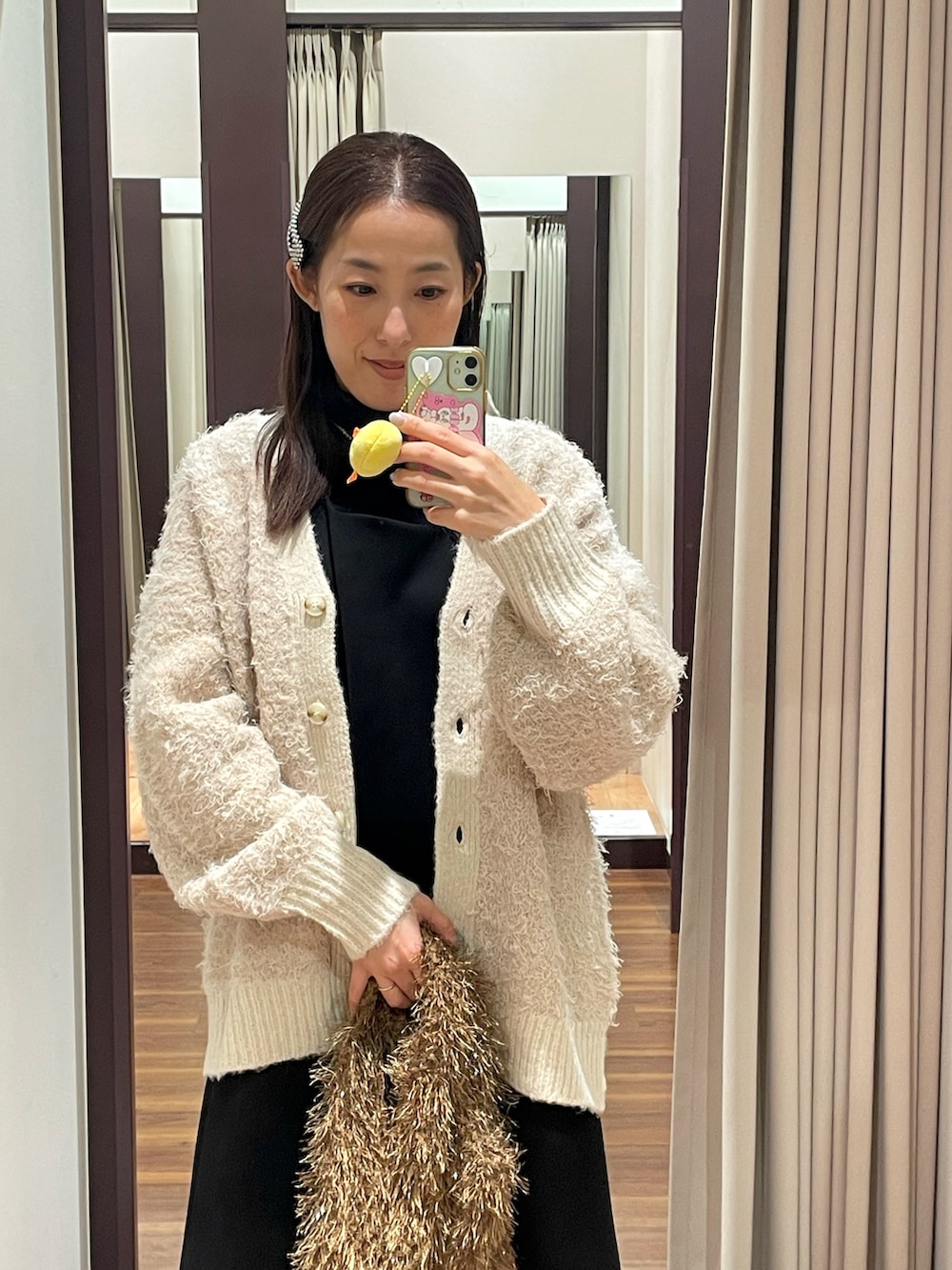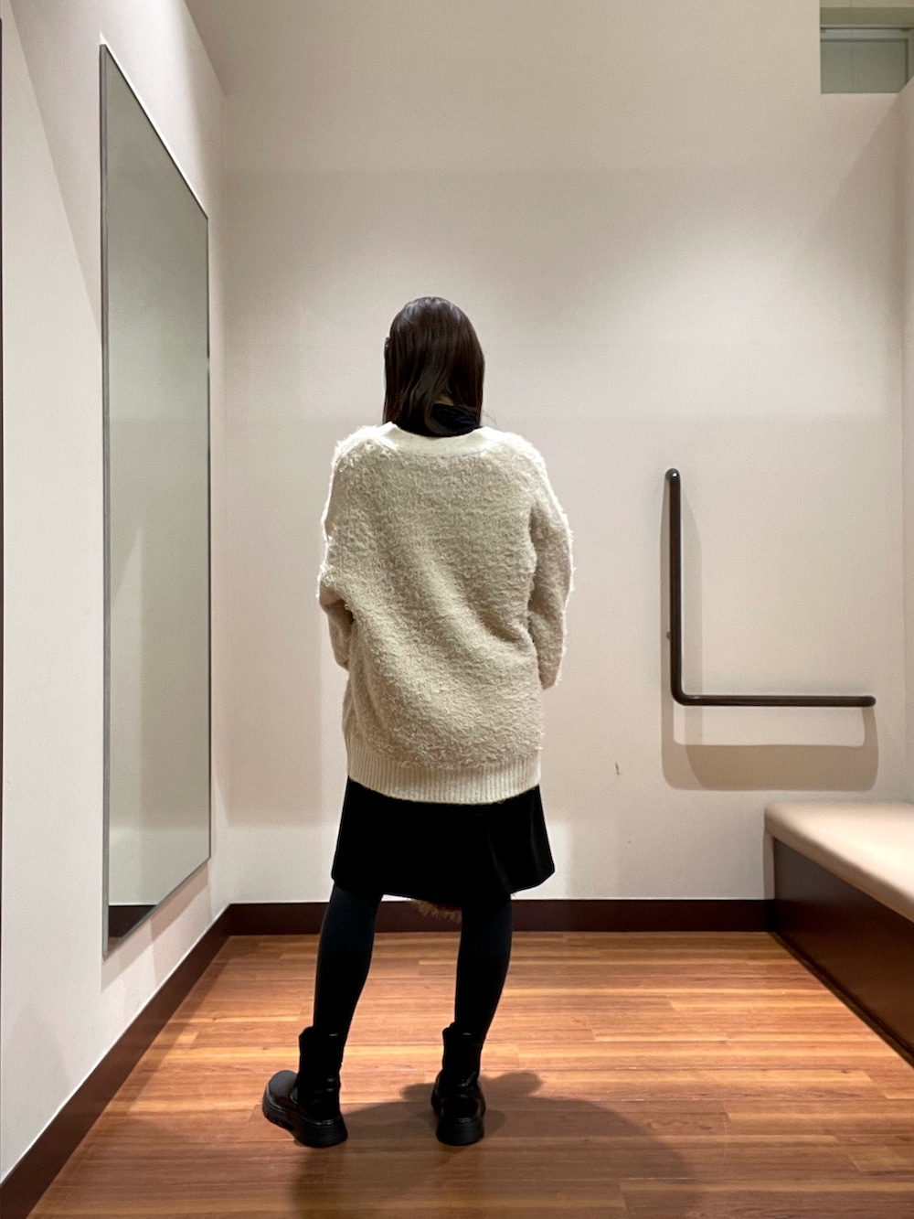 カーディガンはゆったりなデザインでパンツスタイルにもスカートにも合わせやすいですよ‼︎