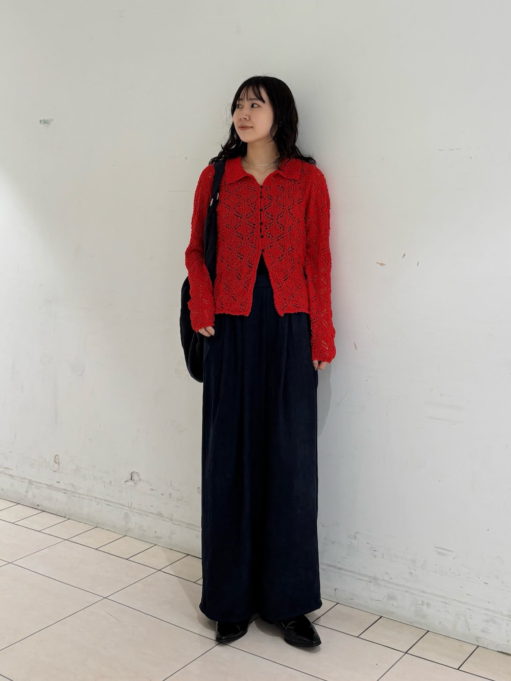 シースルースパンコールニットは場所によって網目のデザインが違うなのでおしゃれで可愛いです!また、シアーなのでゴツくならずに着ていただけます🫧